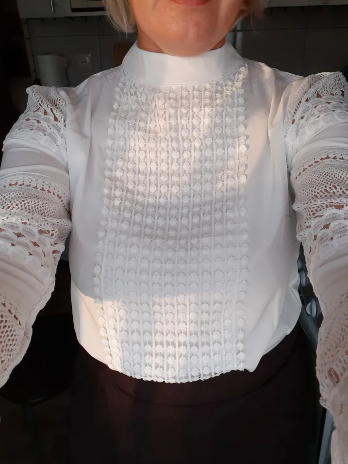 Очень красивая блузка, идентичная фотографии. К минусам он действительно очень маленький, однако я взял 3xl. Во Франции я одеваюсь в L.