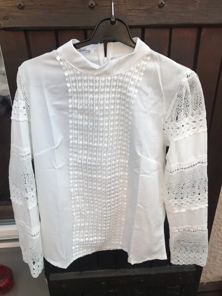 Блузка такая же, как и на картинке, пришла в хорошем состоянии и хорошо упакована, только я не тот размер, я спрашивал о M, и я обтягиваю, так как они Азиатские размеры☹Но блузка очень милая с кружевом, мне очень понравилось