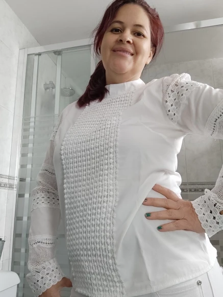 Это моя вторая покупка, красивая, на доставку ушло 20 дней, очень быстрая, я рекомендую блузку и продавцу