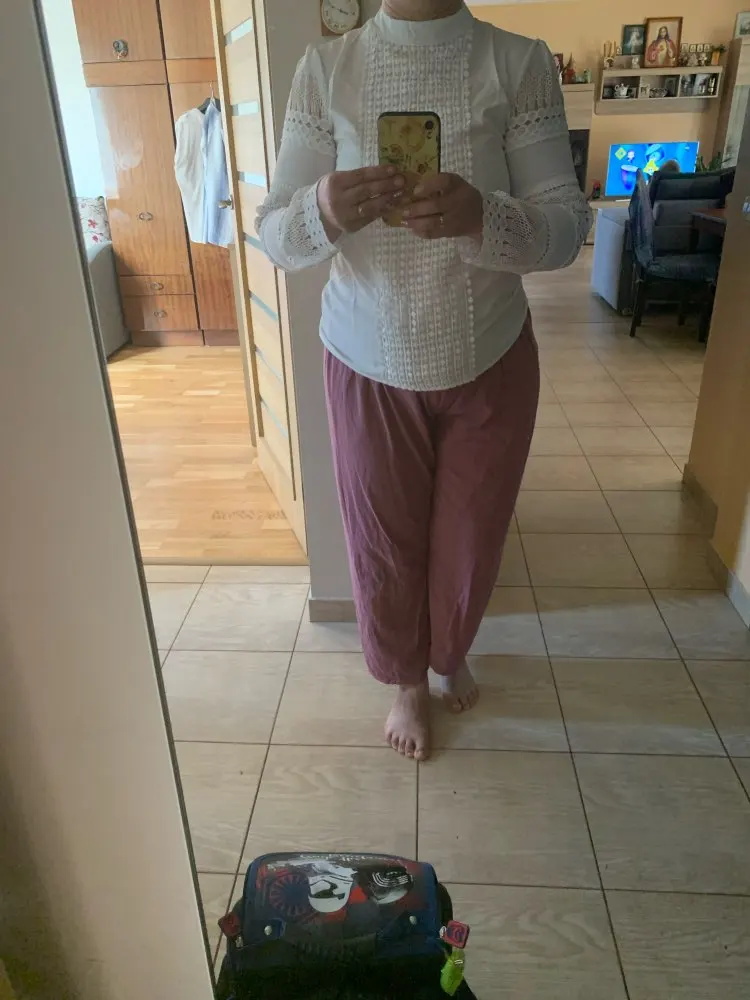 Блузка отличная, хорошо сшита, удобная на ощупь и прекрасно ложится, я ношу размер 34 в сдержанном и замшевом M и идеально. Доставка в Польшу в течение 16 дней. Рекомендуется