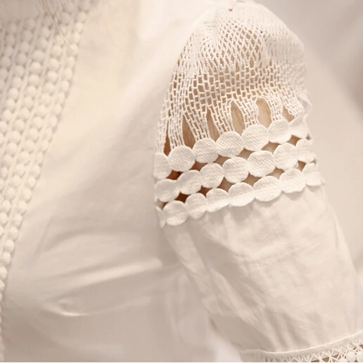 Новинка лета 2021, женские блузки, Облегающая белая рубашка с длинными рукавами, кружевные ажурные повседневные рубашки с цветочным принтом и крючком, блузка, 5xl