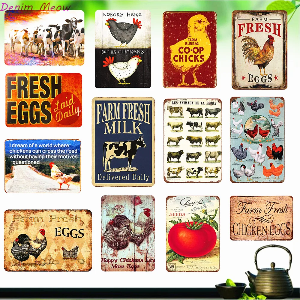 Счастливая курица откладывает больше яиц потертый шикарный фермерский Декор винтажная табличка ферма свежее молоко металлические настенные художественные наклейки украшение WY32