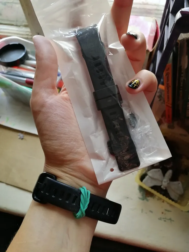 Отправляли долго, начала волноваться, но дошло быстро. Порвалась резинка у оригинального ремешка, поэтому купила этот с двумя резинками, пока переставила одну на оригинальный ремешок. Менять сам ремешок пока не планирую, не хочу трогать крепление, пока там все хорошо. Выглядит неплохо, чуточку отличается от оригинала, если сравнивать рядом, по ширине прорезей, закругленности и длине концов, в мелочах. Мне это неважно, но вдруг кому-то принципиально (последнее фото сравнение с оригинальным ремешком). Мне нравится. Советую.