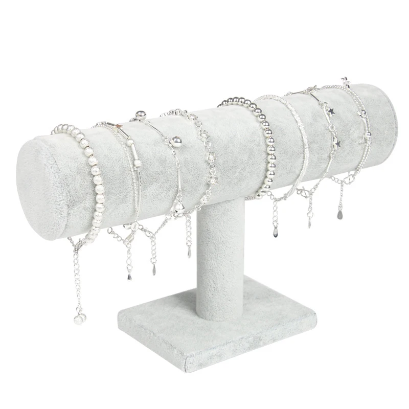 Серый бархатный Браслет Дисплей цепь часы t-бар стойки ювелирных изделий Органайзер Жесткий стенд держатель