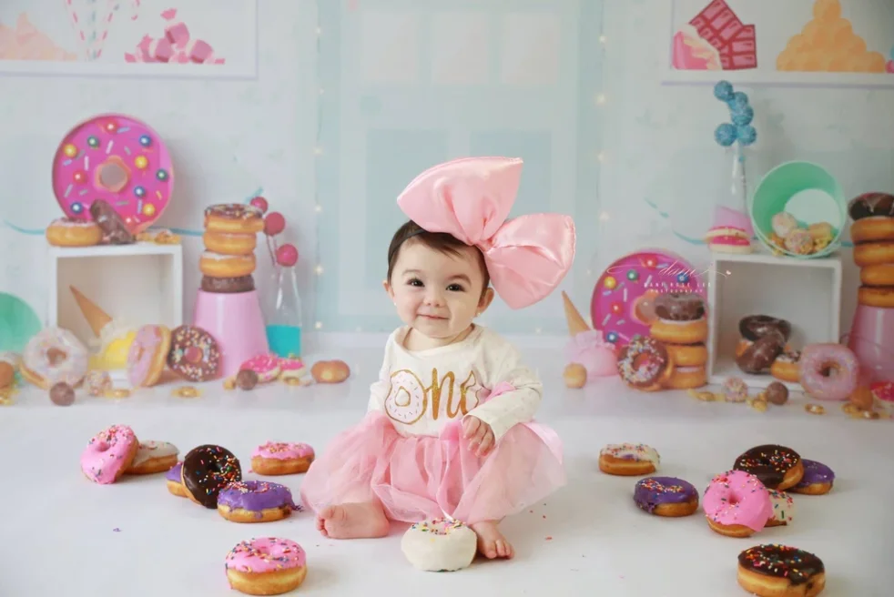 Фон для фотосъемки с изображением милого пончика для девушек, перво...