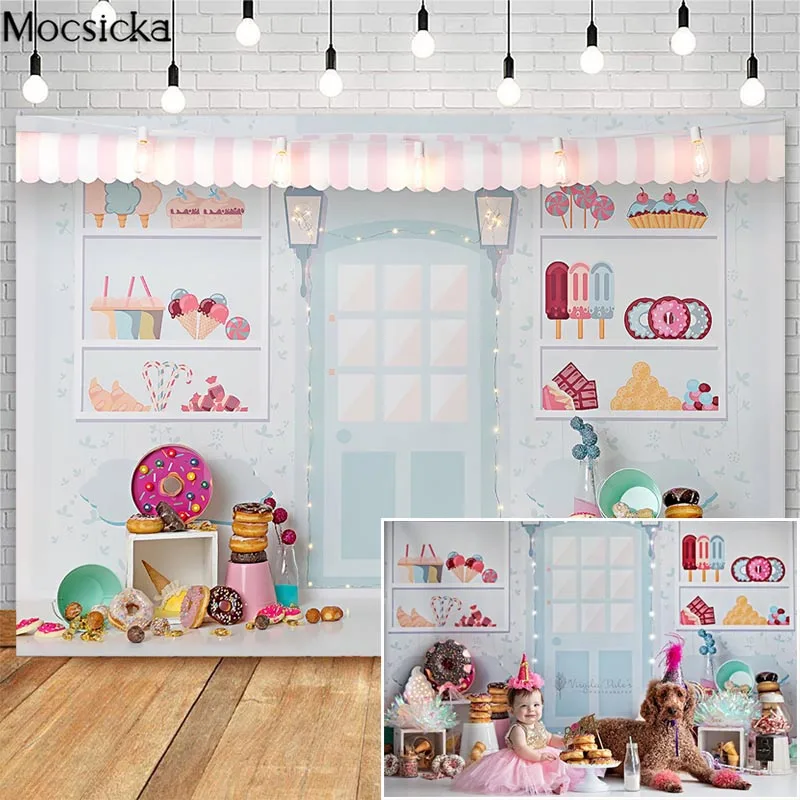 Фон для фотосъемки в магазине мороженого, Декорации для детского дн...