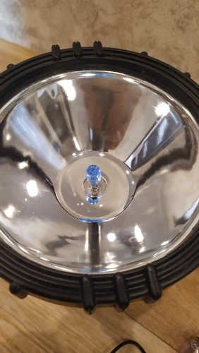 Хрустальная лампа не синяя, так как лампы очень белые, лампа окрашена синим цветом. Прибыл быстро и хорошо упакован.