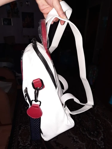 Рюкзачок обалденный, кожзам мягусенький, очень приятный наощупь, ровные строчки, качественная фурнитура, вообщем, покупкой довольна на все 100, даже не ожидала, продавца рекомендую, спасибо огромное, и за подарочек резиночку тоже.