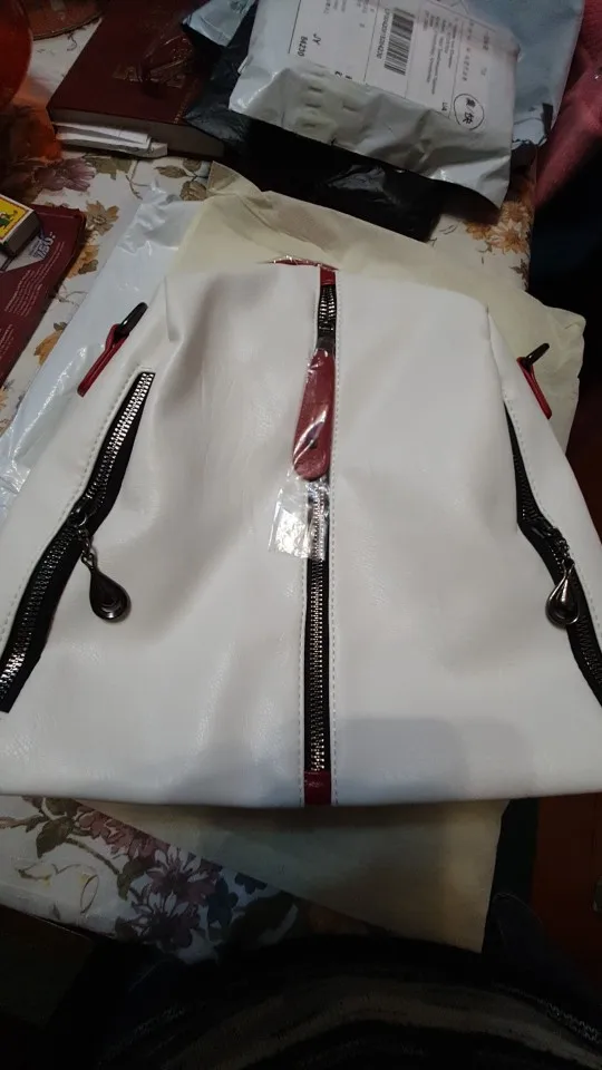 Рюкзак соответствует описанию. Все швы ровные, Фурнитура хорошая. В предыдущих отзывах читала, что остается след от украшения на собачке. Сейчас продавец упаковывает его в отдельный пакетик. Никаких пятен нет. Мне рюкзак понравился.