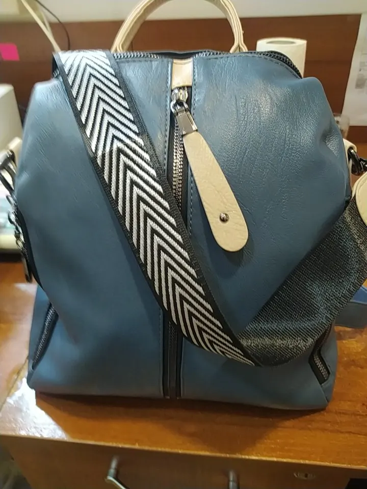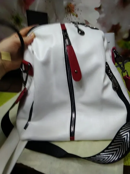 Гарнюній. Фурнітура норм, все працює, навіть ота довга смугаста лямка, яку думала спочатку навіть не чіпляти, виглядає доволі симпатично. Дякую за резиночку для волосся (нам, дєвачькам, таке завжди у пригоді). Не знаю як носитиметься - наплічників з такого тонкого матеріалу у мене ще не було, але він легенький і на літо те що треба. До України їхав майже місяць. Доставка компанією Meest.