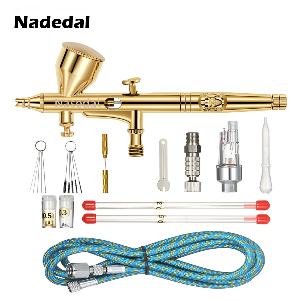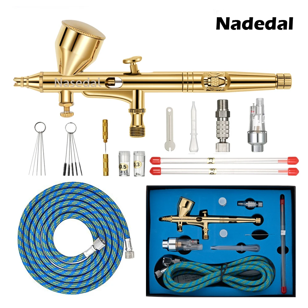 Аэрограф Nasedal, краскопульт двойного действия, 0,2 мм0,3 мм0,5 мм, 9 куб. См, пистолет для распыления лака для ногтей, нанесения макияжа, набор для нанесения краски на лицо, татуировок, инструмент сделай сам