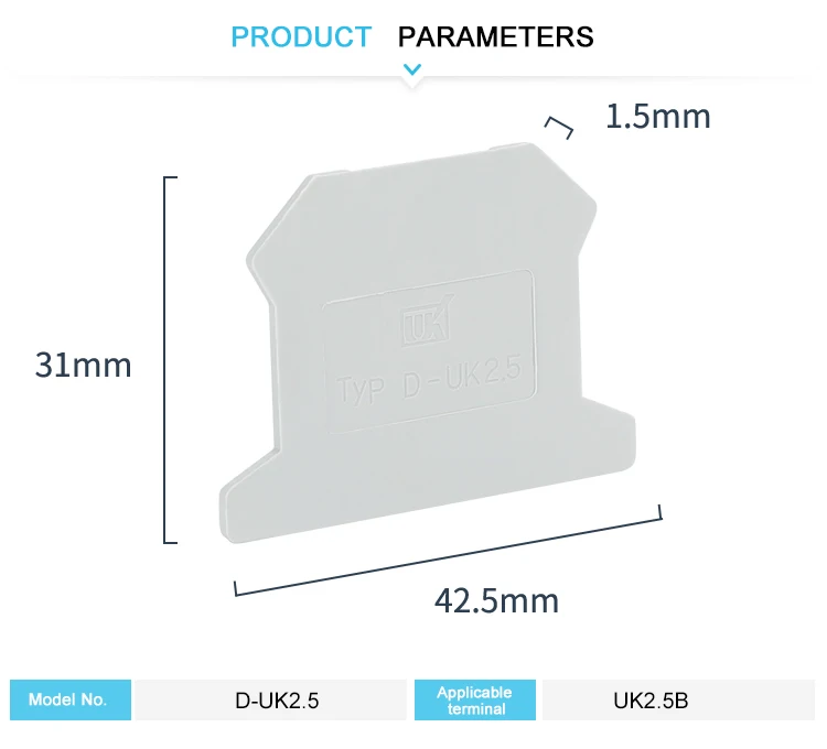 10 шт. D-UK2.5 Торцевая барьер пластина для UK2.5B блоки разъем D-UK2.5B din-рейка клеммные блоки аксессуары Торцевая крышка D-UK 2,5