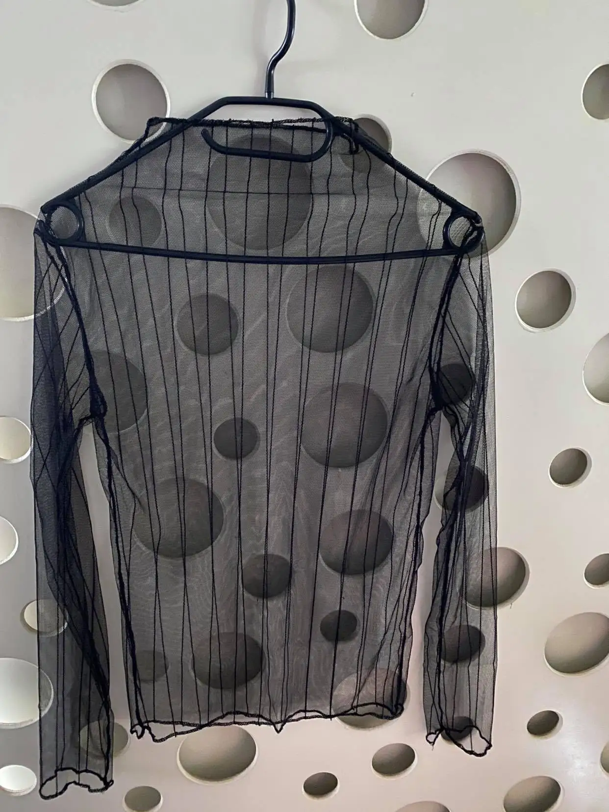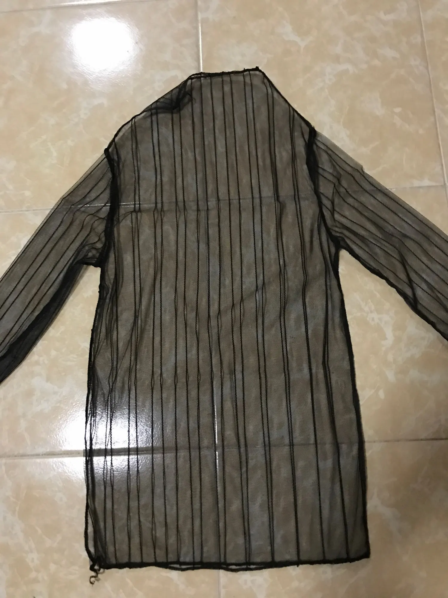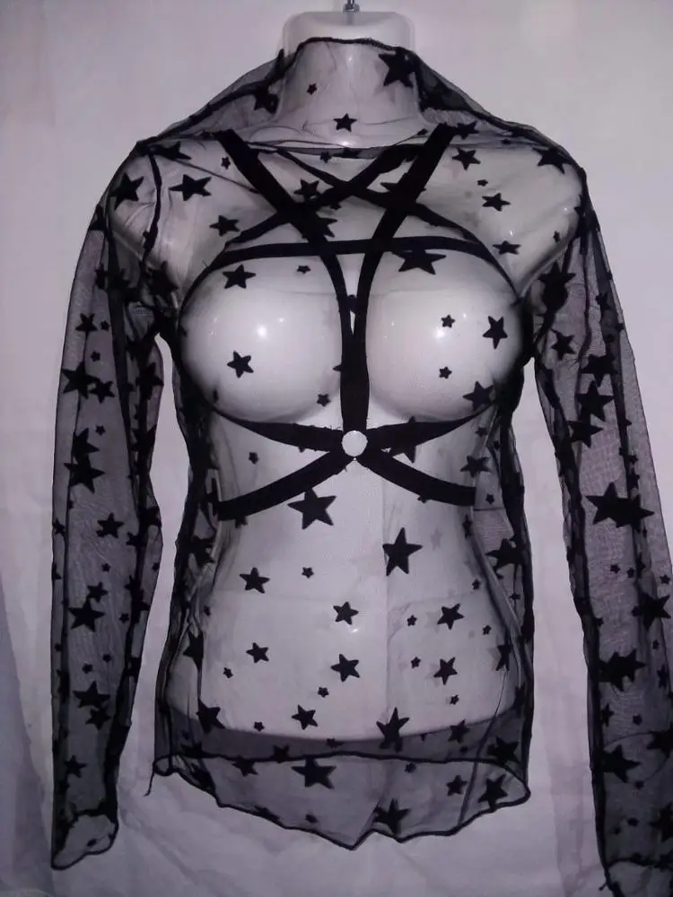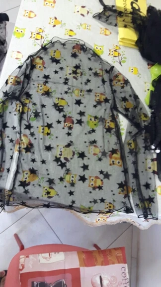 Женская Прозрачная Кружевная футболка, с длинным рукавом, воротником-стойкой, в полоску, со звездами, футболки для вечеринок