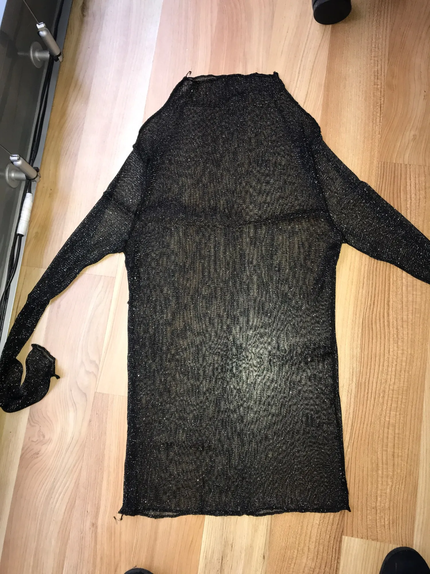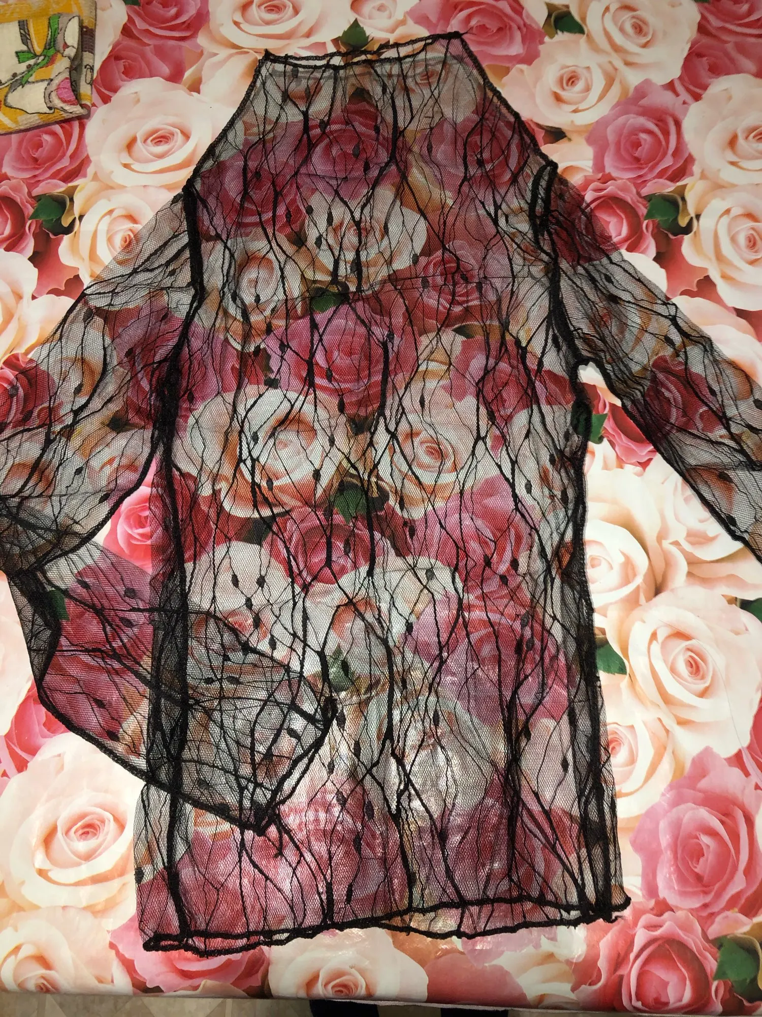 милая ажурная сетчатая кофточка, немного не понятно что делать с вырезом на горле, немного топорщиться, но не критично. под сарафан отлично смотрится, соответствует цене)