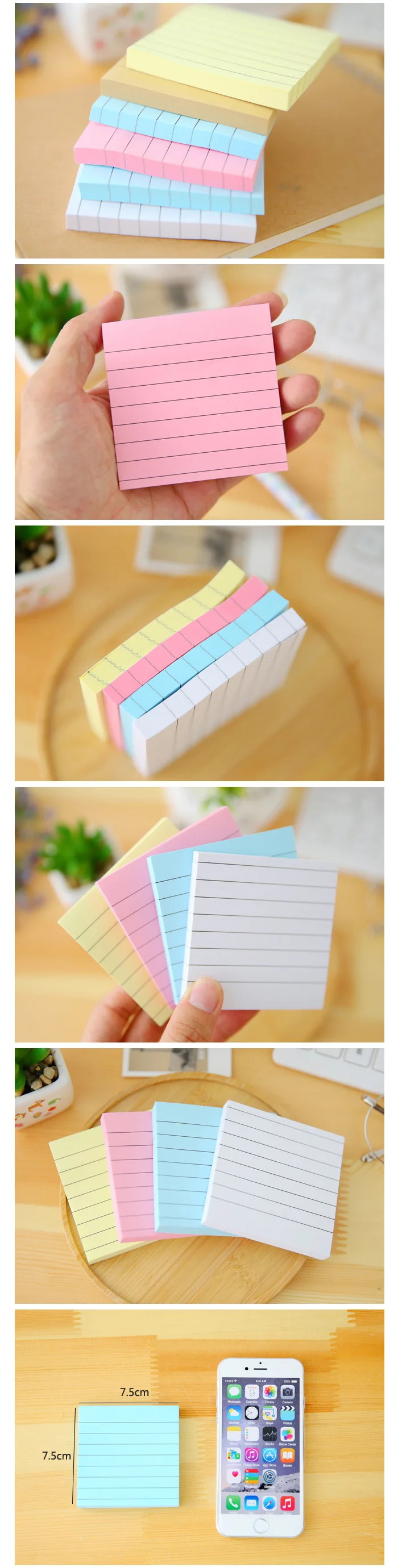 1 шт., простая крафт-бумага, горизонтальная линия, маленькая записная книжка, конфетный цвет, квадратная заметка для сообщений, много раз размещается, липкая заметка