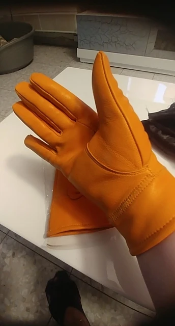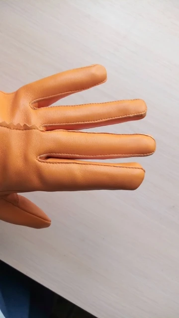 Цвет оказался скорее жёлтый, чем оранжевый, пальчик указательный прошит некрасиво. А так, в целом, хорошие перчатки. Это уже третьи я заказываю. Кожа натуральная, без сомнений. внутри подклад. Приехали быстро.