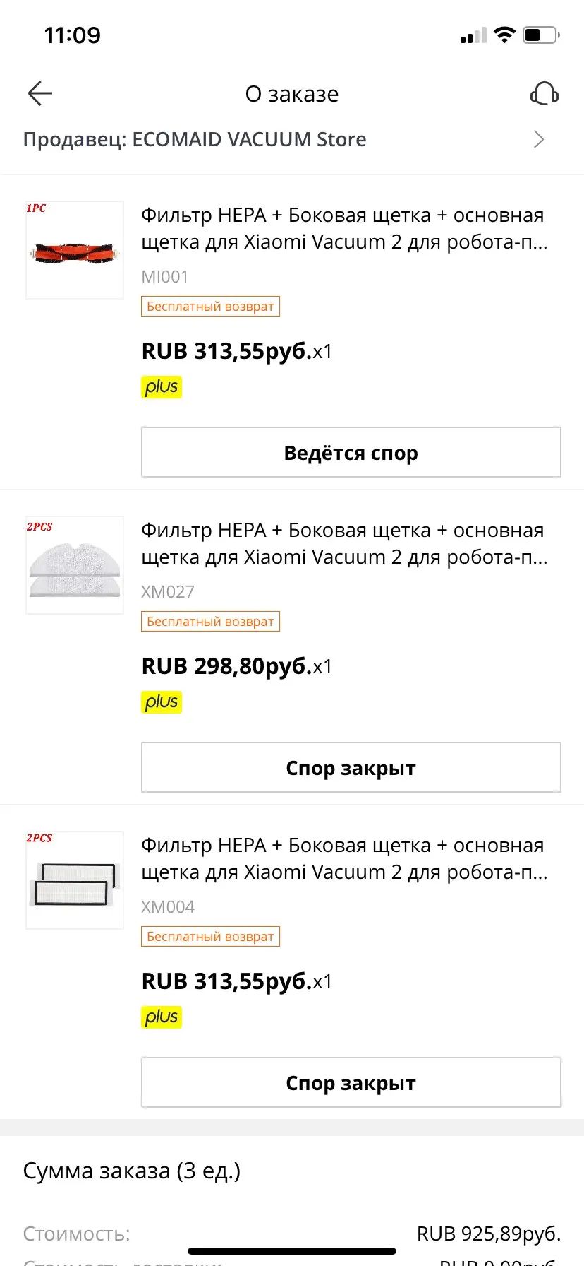 Пришли детали не подходящие на робот пылесос! Открывала спор, продавец меня обманул с адресом возврата , оказывается нельзя возвращать товары напрямую в Китай, потом я сама нашла как вернуть на склад в Москве. Все 3 товара вернула, но деньги мне не возвращают! Плохой продавец , не желающий сотрудничать и возвращать деньги! 1000 рублей подарила вдобавок к возвращённым товарам. Закрыли спор ,но деньги не вернули!