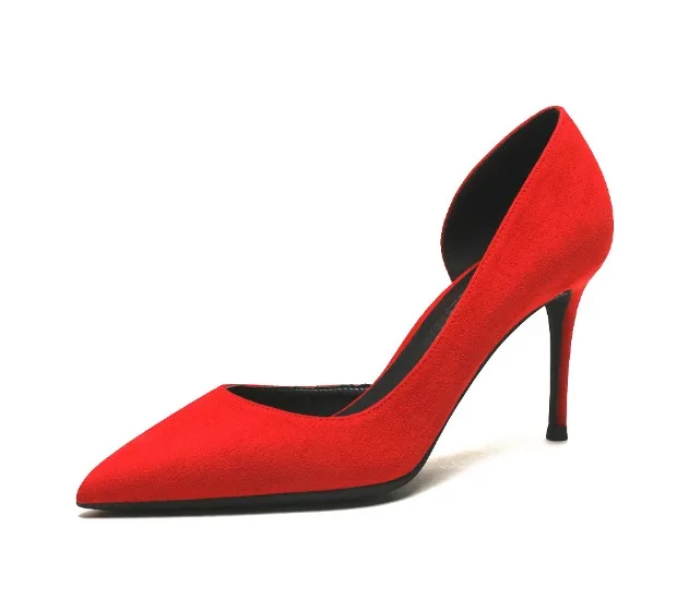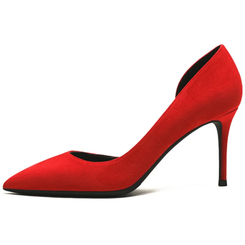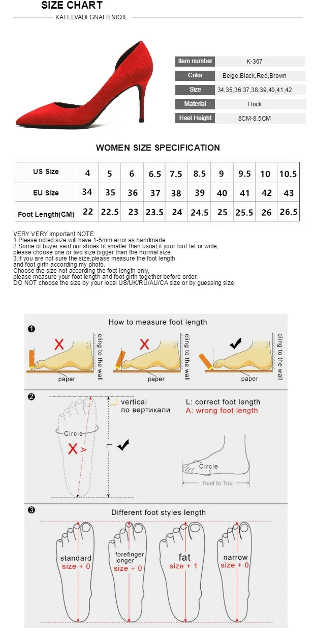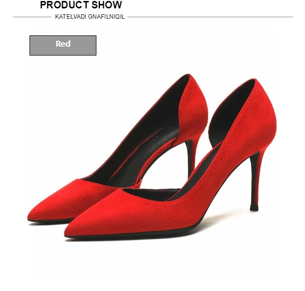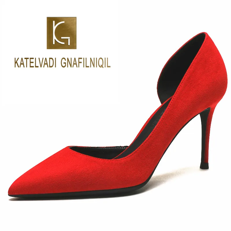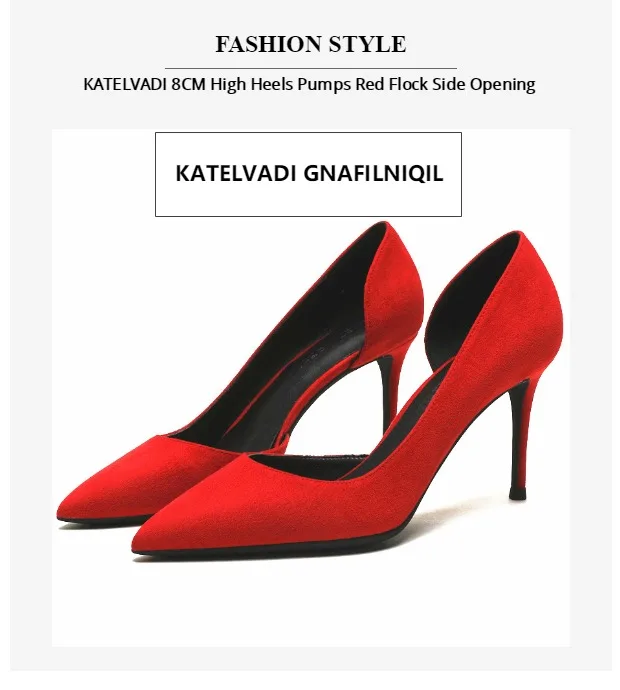 KATELVADI; Высота каблука: 8 см ботинки на каблуках красные женские туфли из флока; Боковая; Расстегнутая; Туфли; Женские туфли-лодочки; Офисные свадебные женские туфли с острым носком K-367