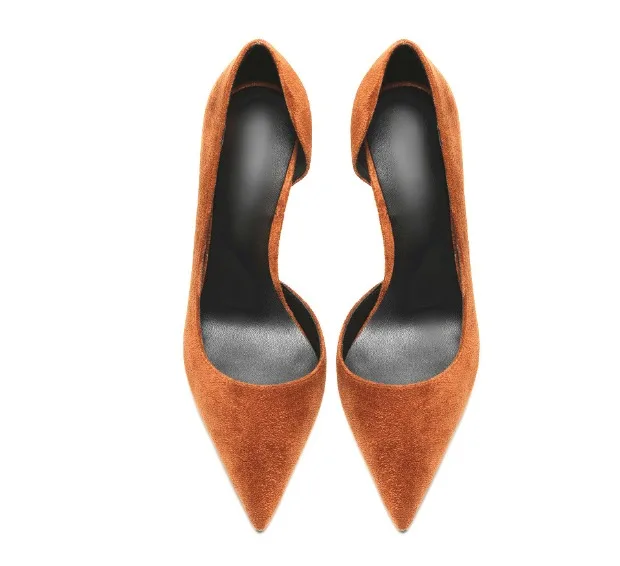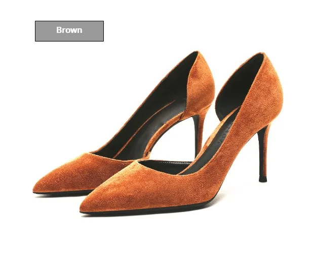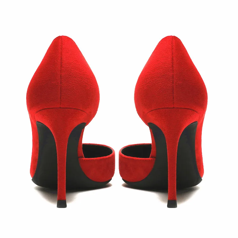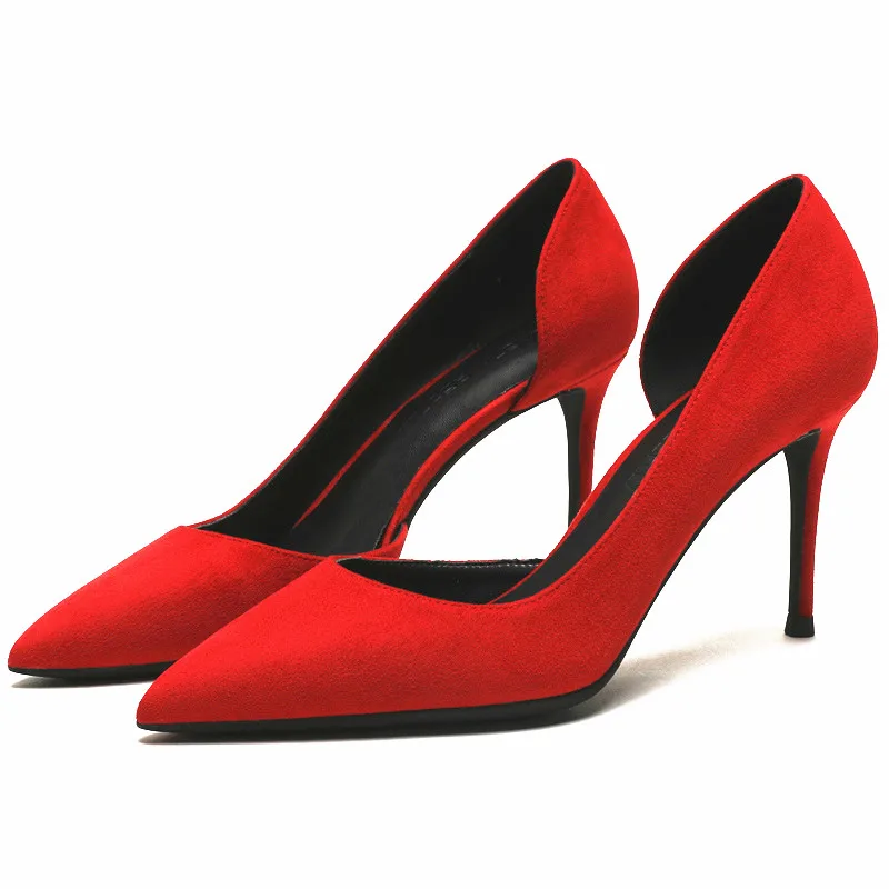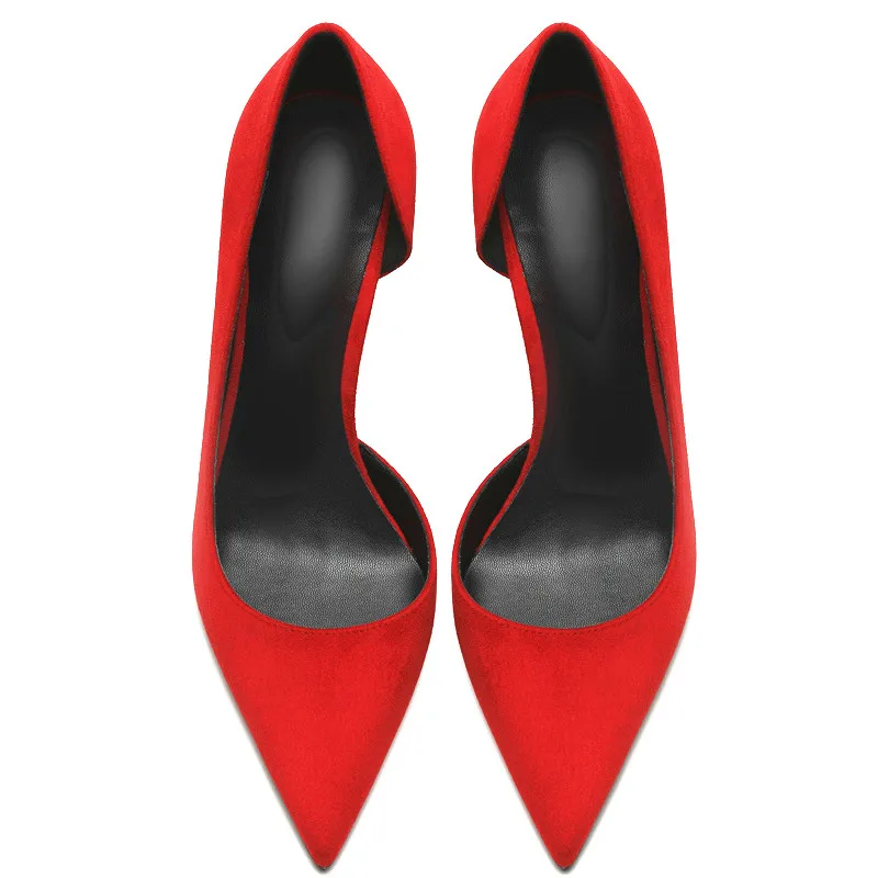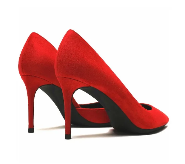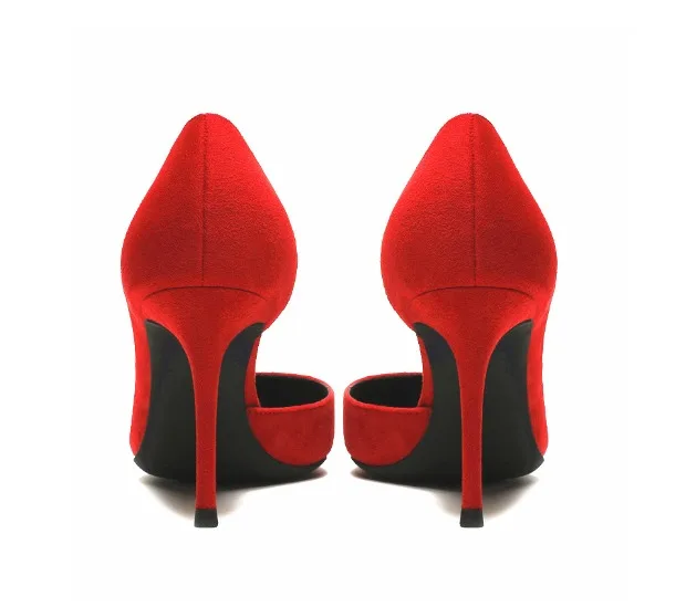 KATELVADI; Высота каблука: 8 см ботинки на каблуках красные женские туфли из флока; Боковая; Расстегнутая; Туфли; Женские туфли-лодочки; Офисные свадебные женские туфли с острым носком K-367