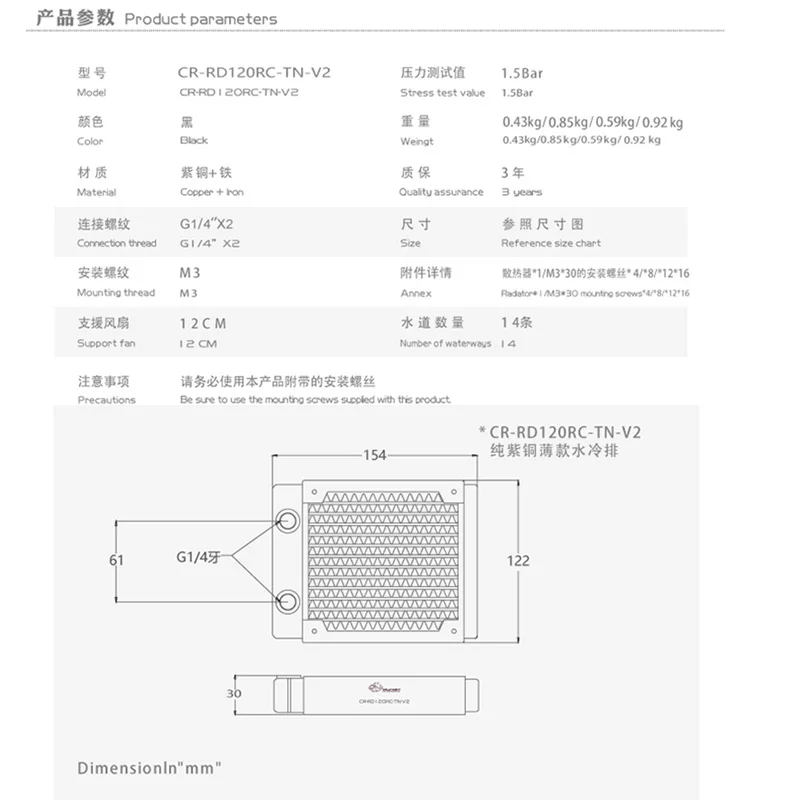 Bykski водяное охлаждение 120 мм медный радиатор, толщина 30 мм, лучше для вентилятора 12 см, черный, белый, CR-RD120RC-TN-V2