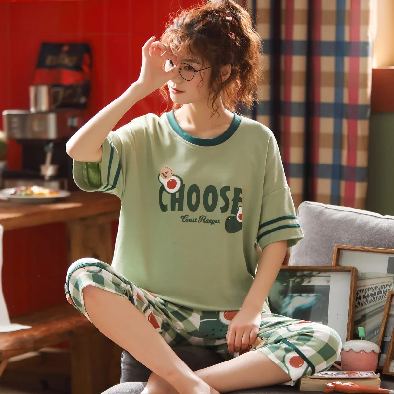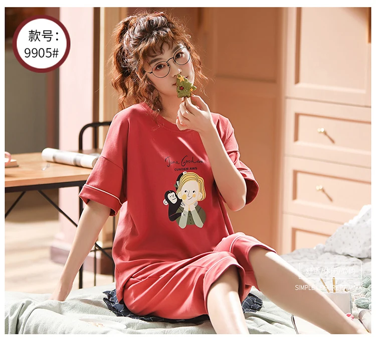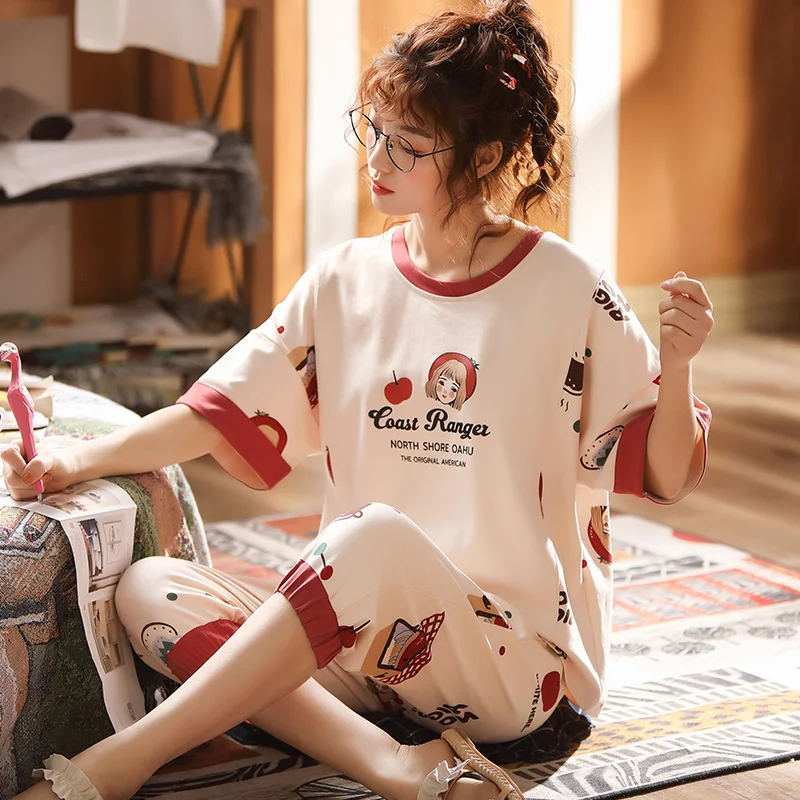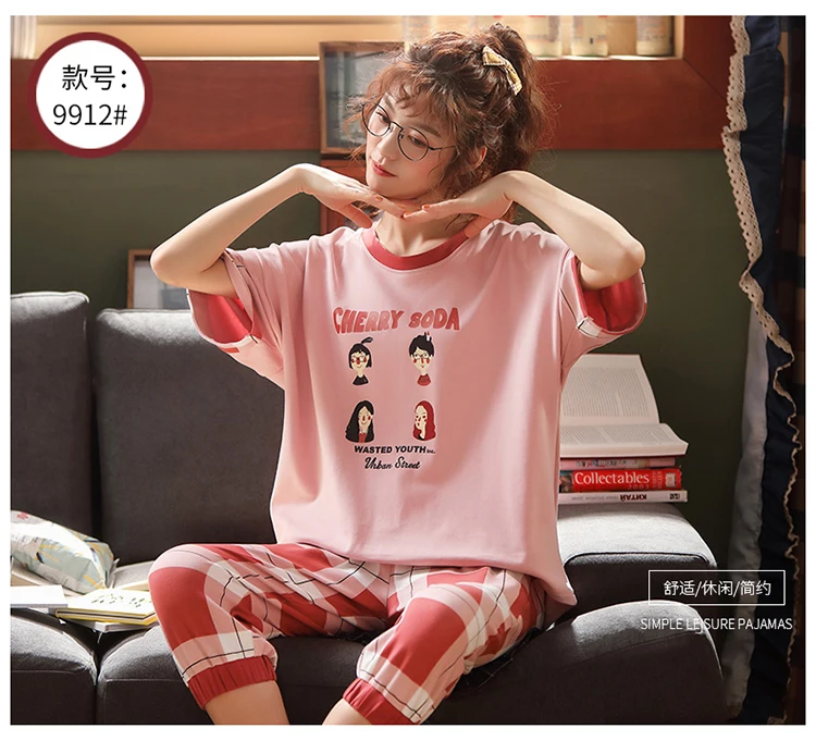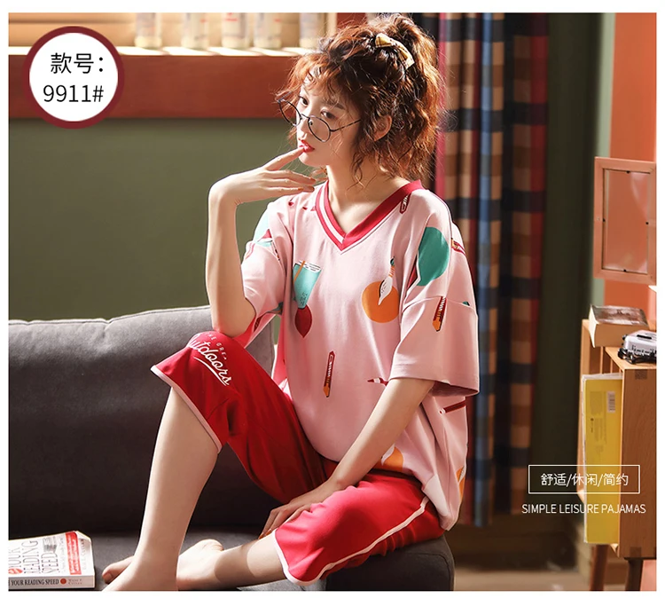 Большие размеры M-5XL Женская пижама с коротким рукавом, комплекты Лето с изображением клубники для фиолетовый, одежда для сна, пижама для маленькой девочки Mujer большого размера одежда для сна Одежда для взрослых