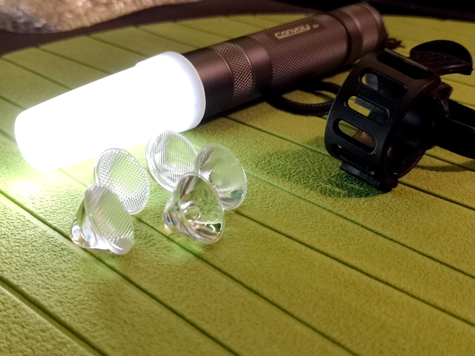 Это мой первый конвой, и он мне понравился. Брался для конкретной задачи - кратковременная подсветка при видеосъемке. Нужна была максимальная мощность, в компактном корпусе. Продавец положил в подарок TIR оптику на 60 градусов. Переведён в режим 100% only. Греется, конечно, зверски. Ещё быстрее с тир оптикой. Экспериментировал с непрерывным свечением на 100%. При нагреве сбрасывает мощность. За 25 минут нагрелся до 64 градусов сверху, и до 54 по центру. Стоял на торце, через 25 минут упал (видимо кнопка вздулась от температуры. Испугался, думал аккумулятор, но нет, с ним всё ок (Samsung 30Q).