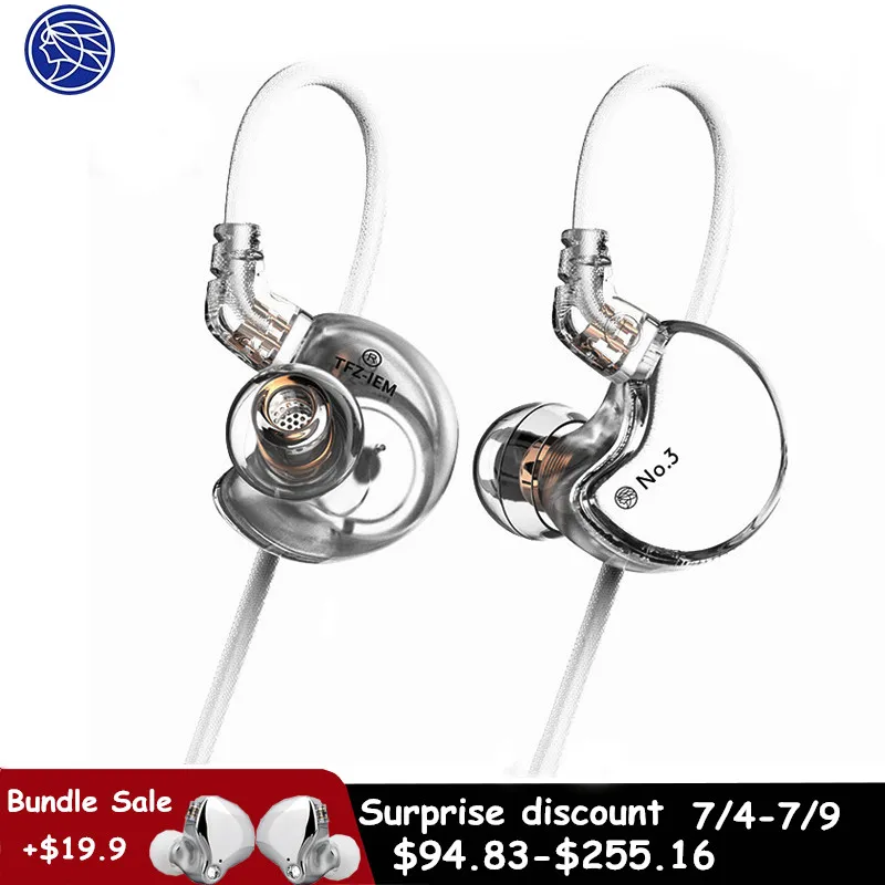 Наушники-вкладыши TFZ NO.3 с динамическим драйвером и отличными басами, наушники с шумоподавлением, Dj стереогарнитура 0,78 мм, 2-контактный съемный кабель