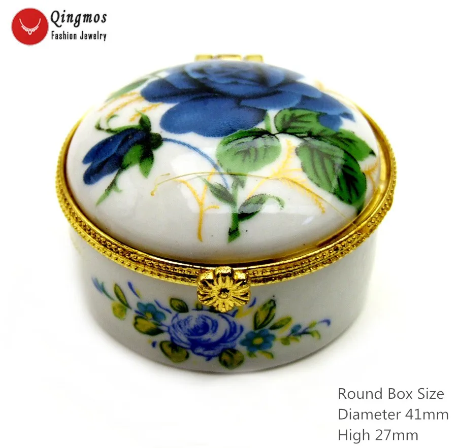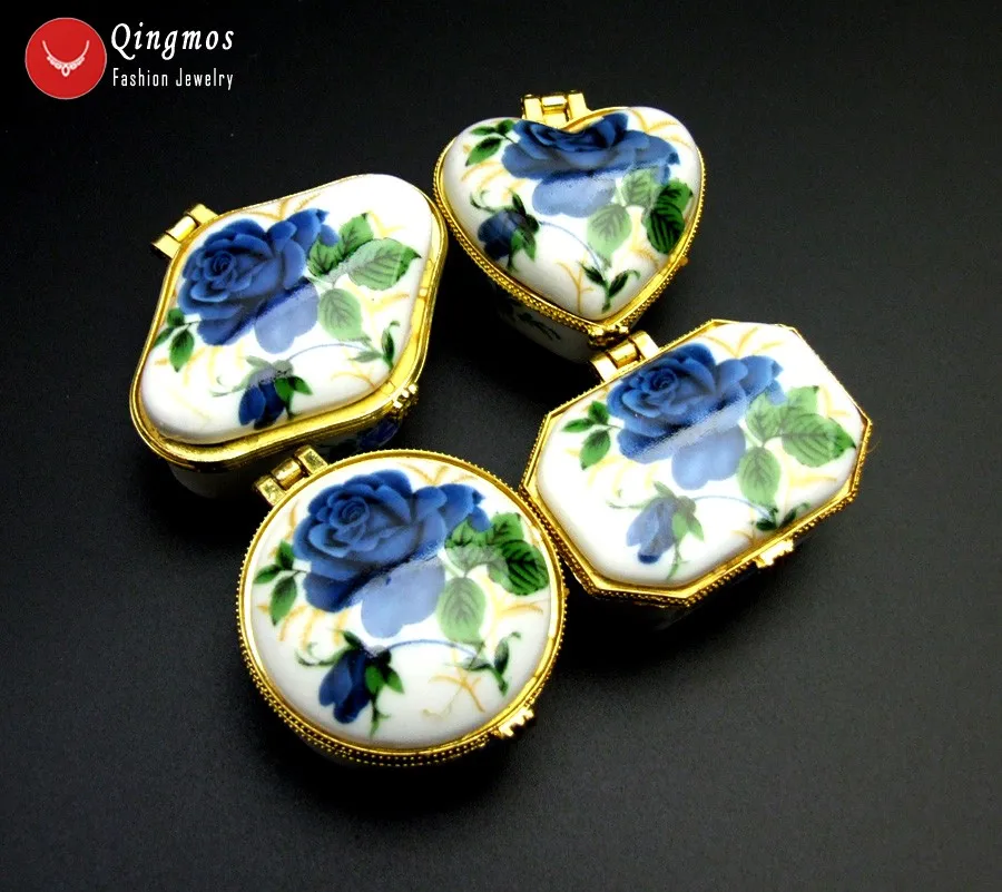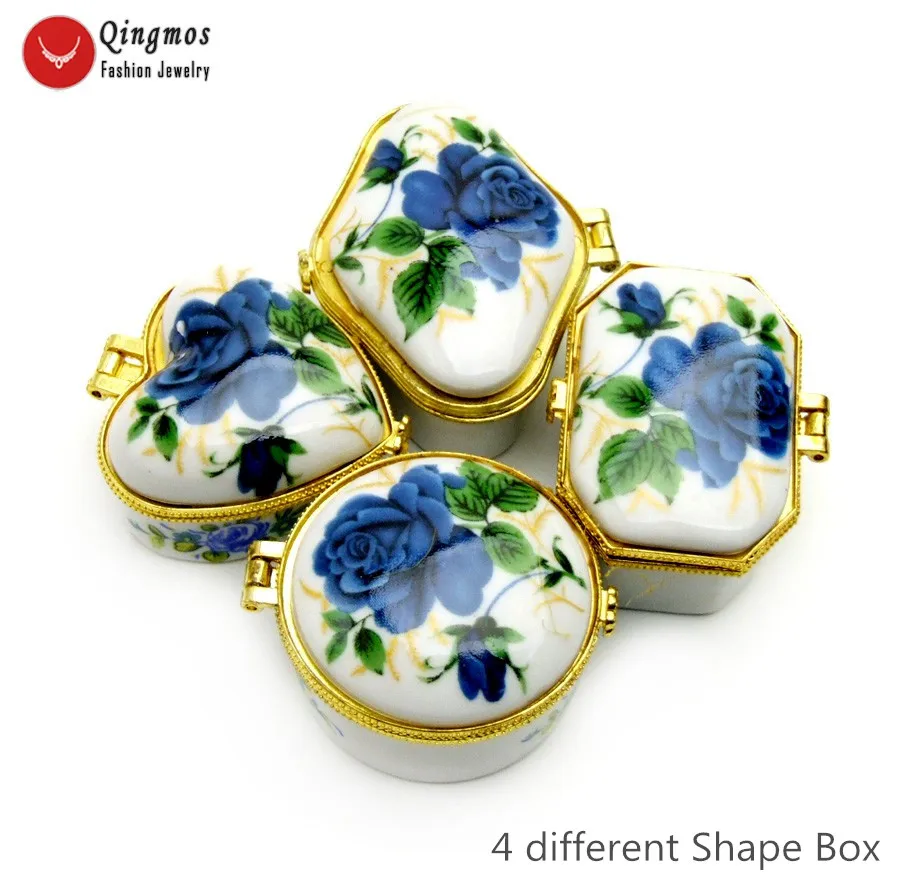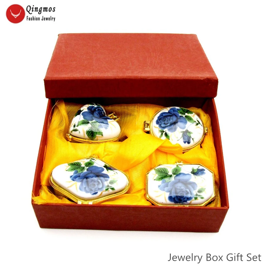 Qingmos 1 комплект (4 шт.) синяя китайская керамическая многофункциональная коробка для ювелирных изделий с коробкой 1,5 дюйма подарочный набор фарфоровая шкатулка