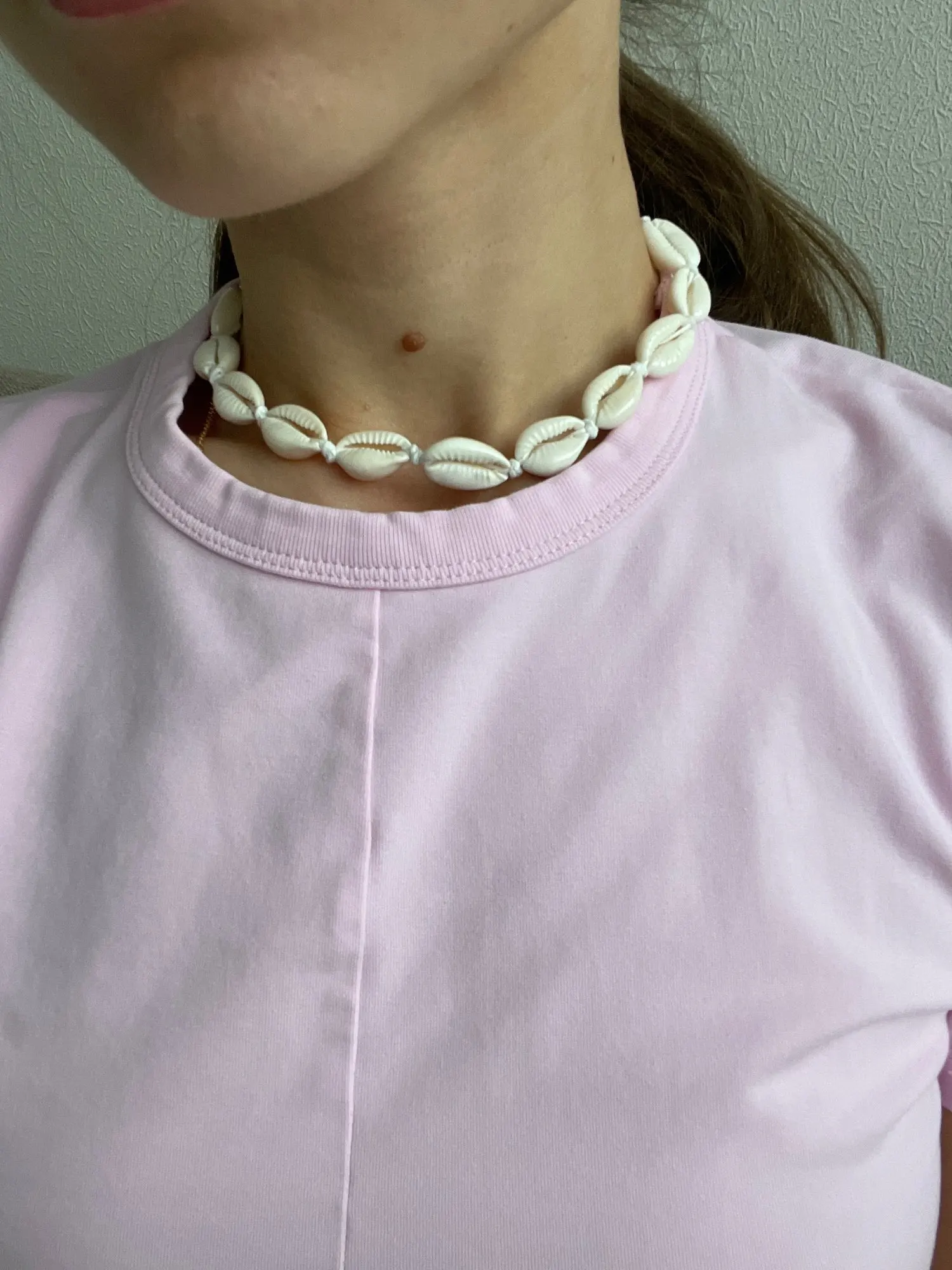 Ракушки перевёрнуты в своей оси и ожерелье ложится криво на шее