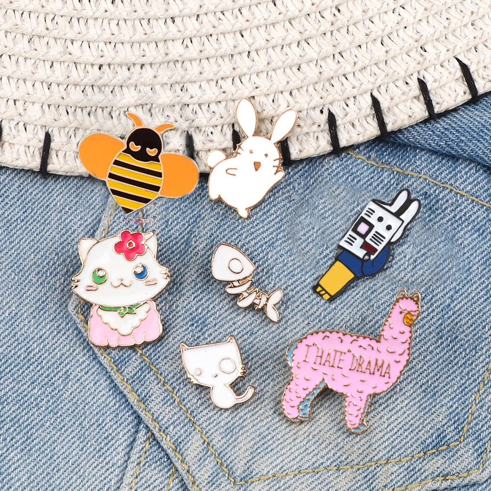 Модная мультяшная животная панда булавка лиса Женская Брошь Милая Кролик Кот телефон значок лацкан рубашка сумка сплав значки булавки ювелирные изделия