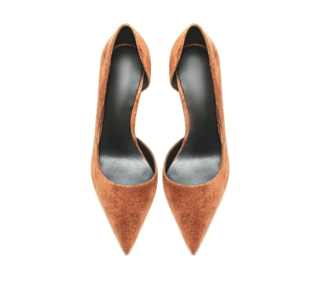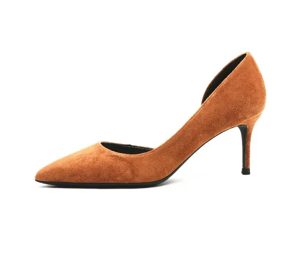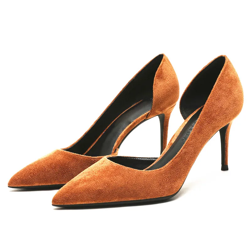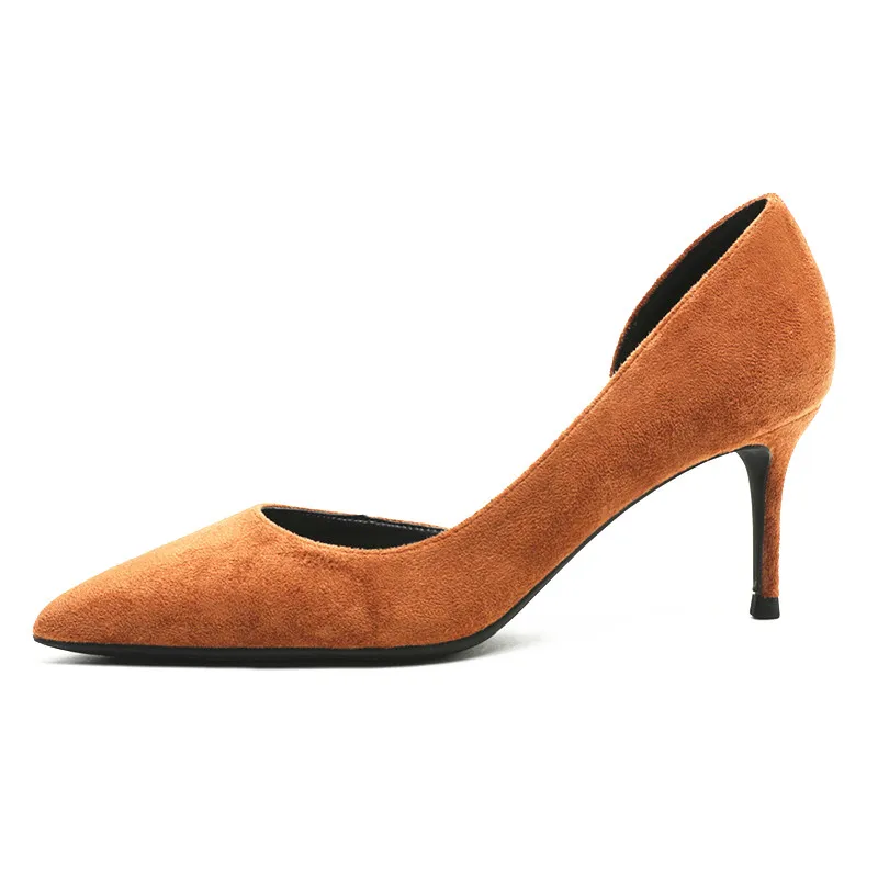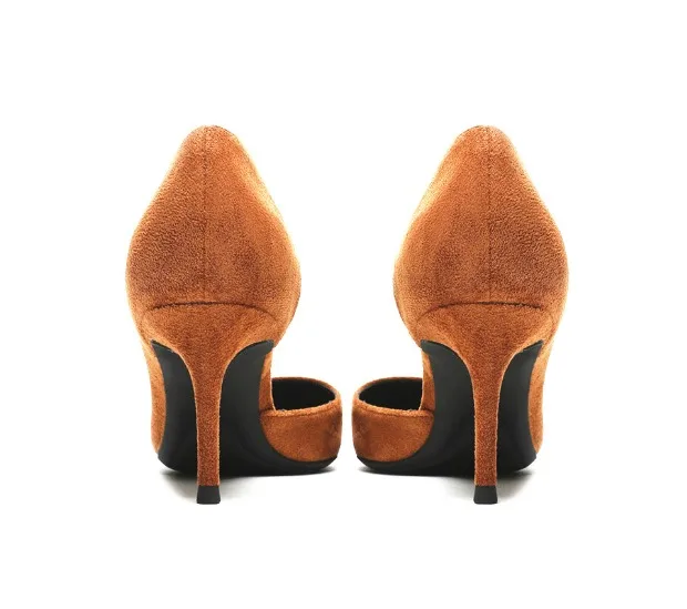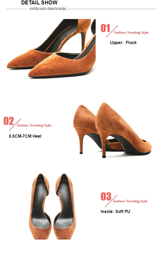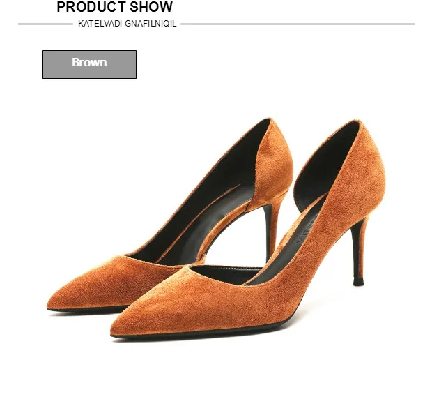 KATELVADI 6,5 см обувь на высоком каблуке Для женщин женские туфли-лодочки коричневого цвета из флока; Боковая; Расстегнутая; Для женщин на высоком каблуке обувь для вечеринок Для женщин Свадебная обувь K-365