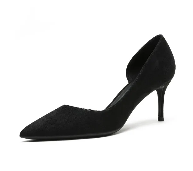 Женские туфли-лодочки KATELVADI, черные туфли из спилка на среднем ...