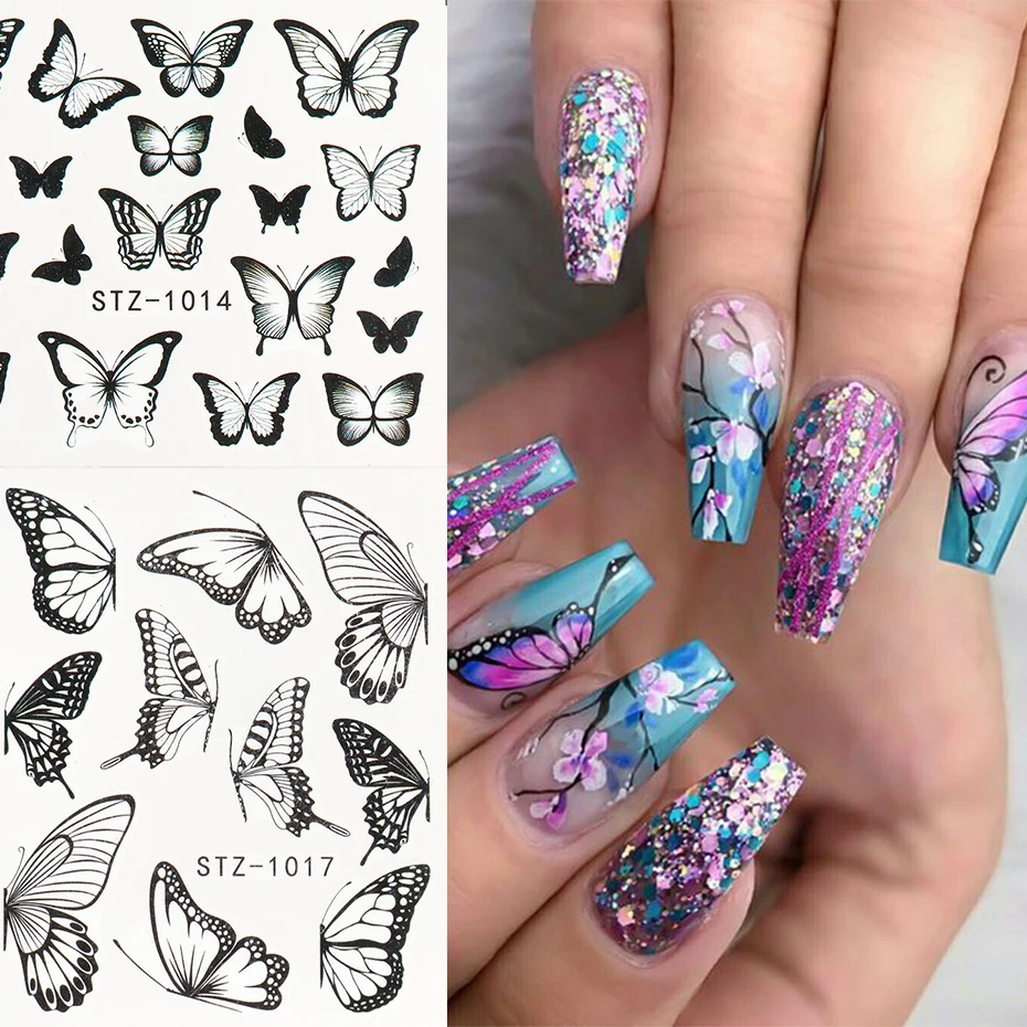 Pattern 2Jewelry Flower Water Decal Black Sticker For Nail