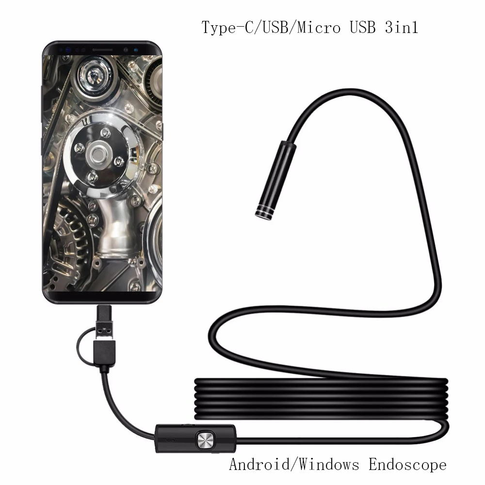 Водонепроницаемый эндоскоп, 1080P, Micro USBType-cUSB, для Android, ПК, Бороскоп, полужесткая трубка