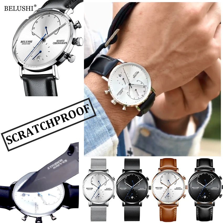 Мужские водонепроницаемые часы с кожаным ремешком, тонкие кварцевые повседневные деловые мужские наручные часы от ведущего бренда Belushi, модные мужские часы 2018