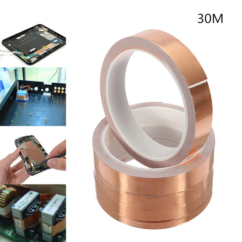 Односторонняя клейкая проводящая медная фольга, 30 м, 510 мм, лента для захвата гитары, защита от электромагнитных помех, Антистатическая лента от электромагнитных помех