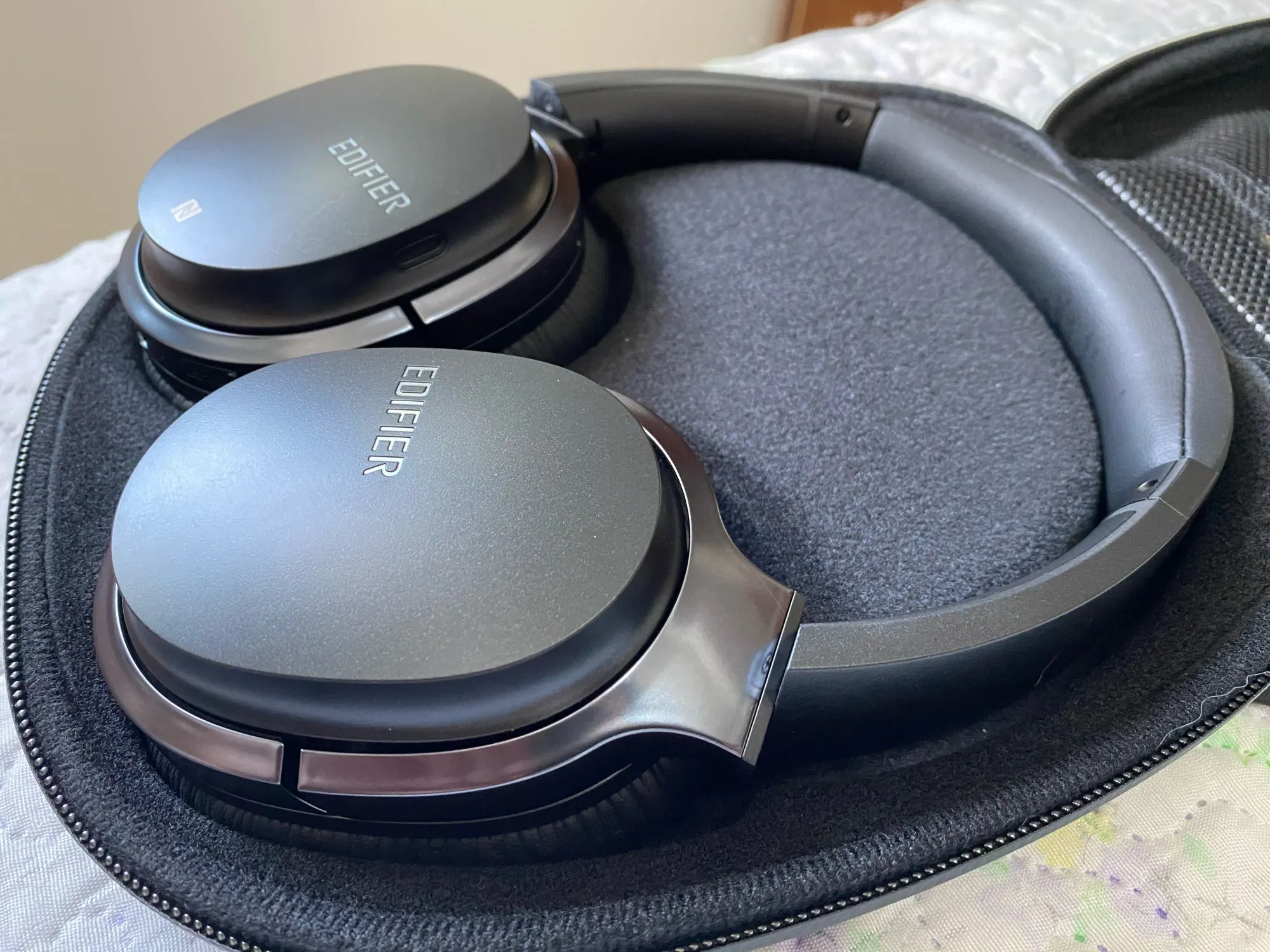 Мой любимый EDIFIER на этот раз не очень впечатлил меня. Качество звучания наушников на 4-. Ситуацию улучшает эквалайзер. Старые проводные edifier h850 звучат намного лучше, даже если и эти подключить по aux кабелю. После удаления защитной пленки на правом наушнике отклеилась часть буквы в названии. Мое личное ощущение: система шумоподавления работает наоборот - при её вЫключении в уши добавляются внешние шумы :) и падает итак невысокое качество звучания. Шумодовление включается/выключается и при выключенных наушниках. Забыл отключить - жди разряда батареи. Наверное так сделали, чтобы ANC работало и при подключении через aux с выключеным блютусом. За такую цену считаю норм наушники.