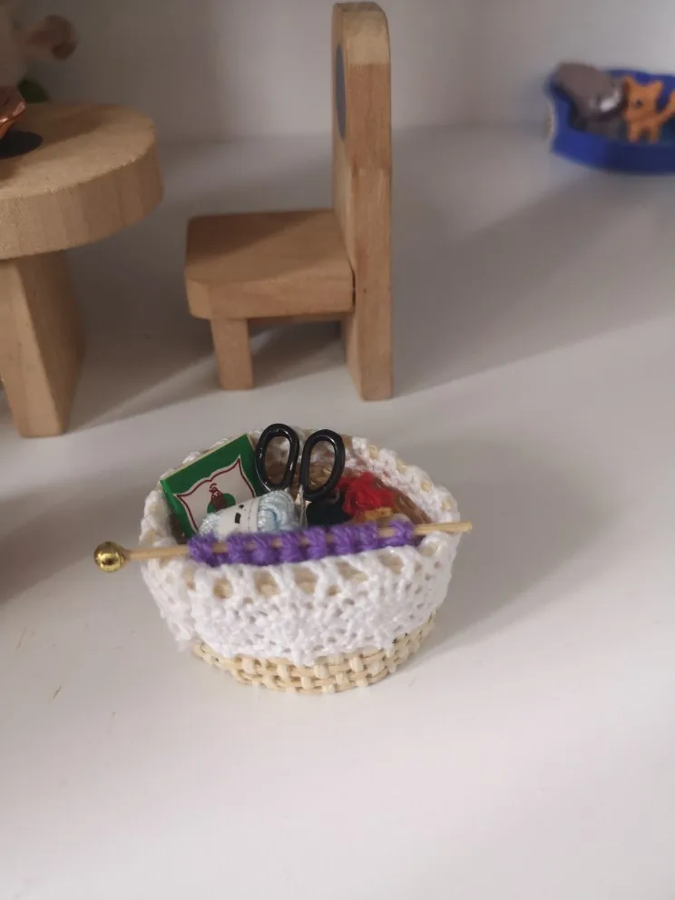 112 Миниатюрные аксессуары для кукольного домика, мини-корзина для инструментов для вязания, имитация шерсти, модели игрушек для украшения кукольного дома