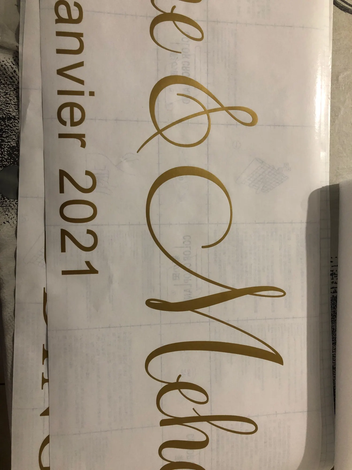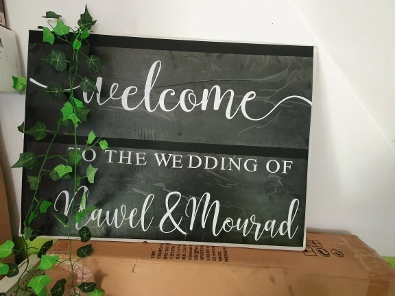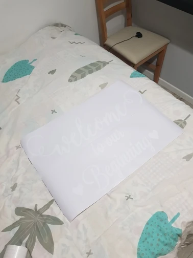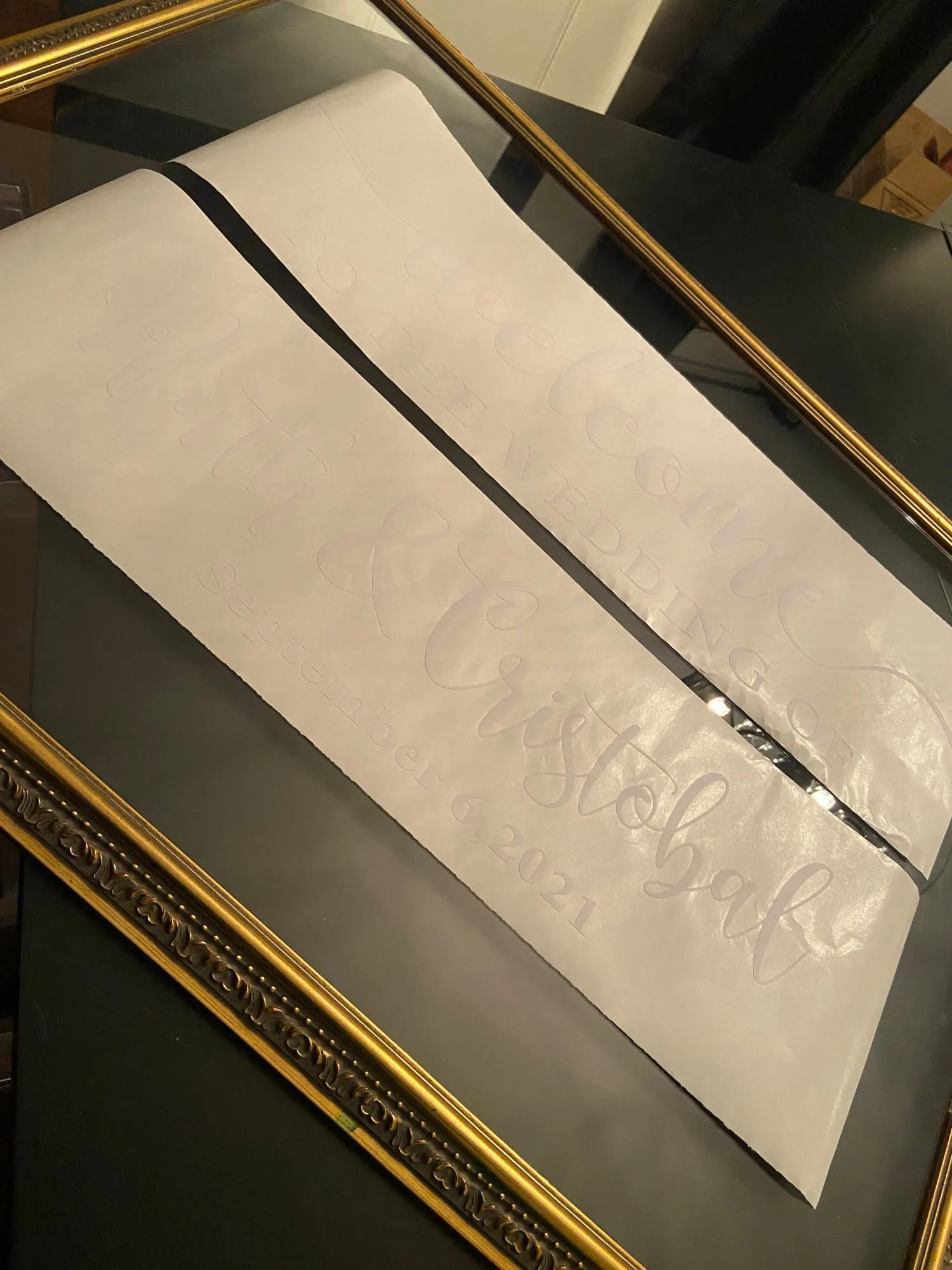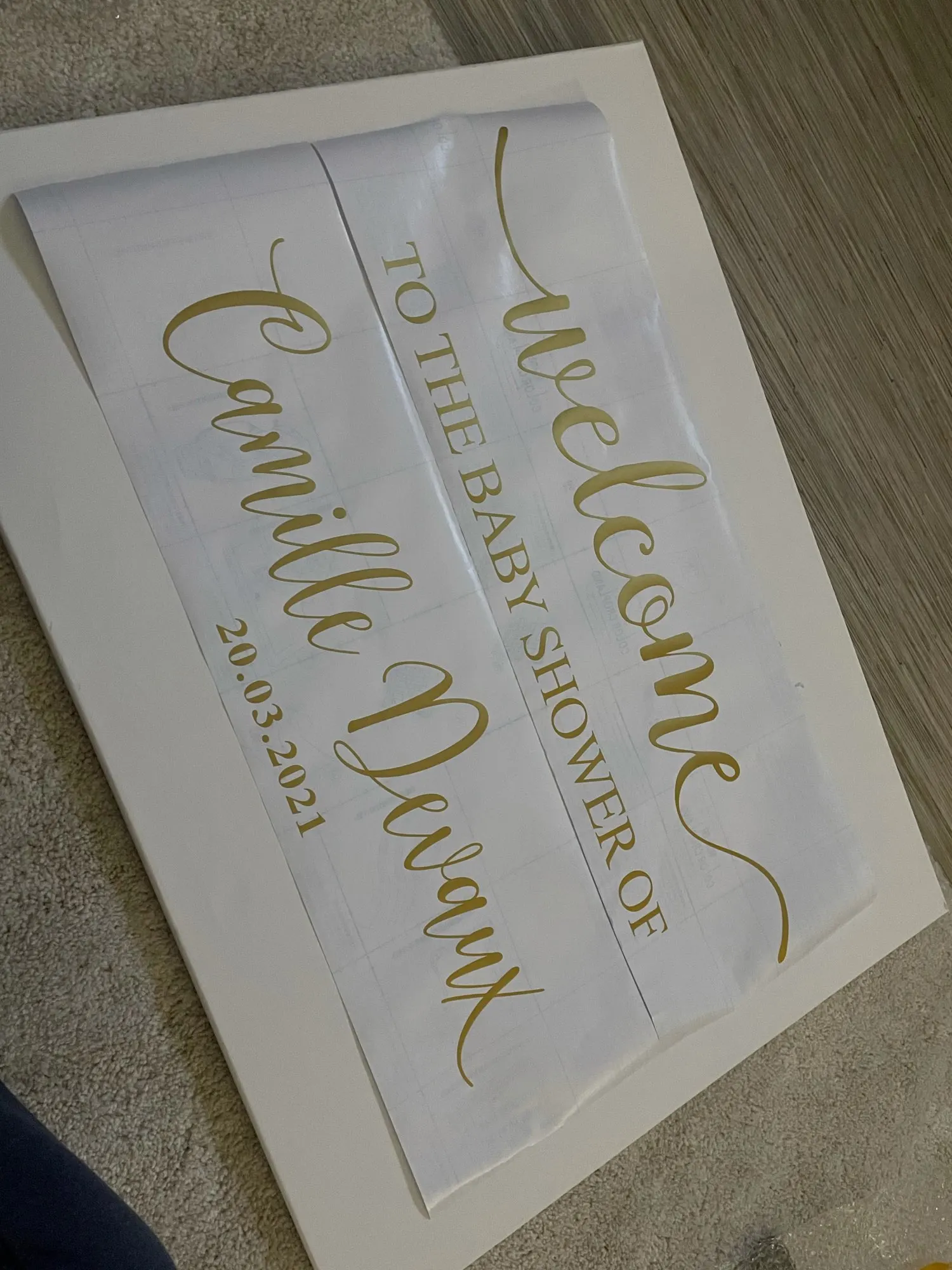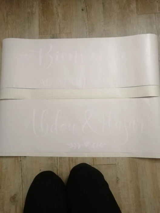 Мы кладем наклейку на некоторые плексигласы и используем для нашей свадьбы. Должны быть очень внимательны при размещении, так как когда он касается поверхности, он не движется