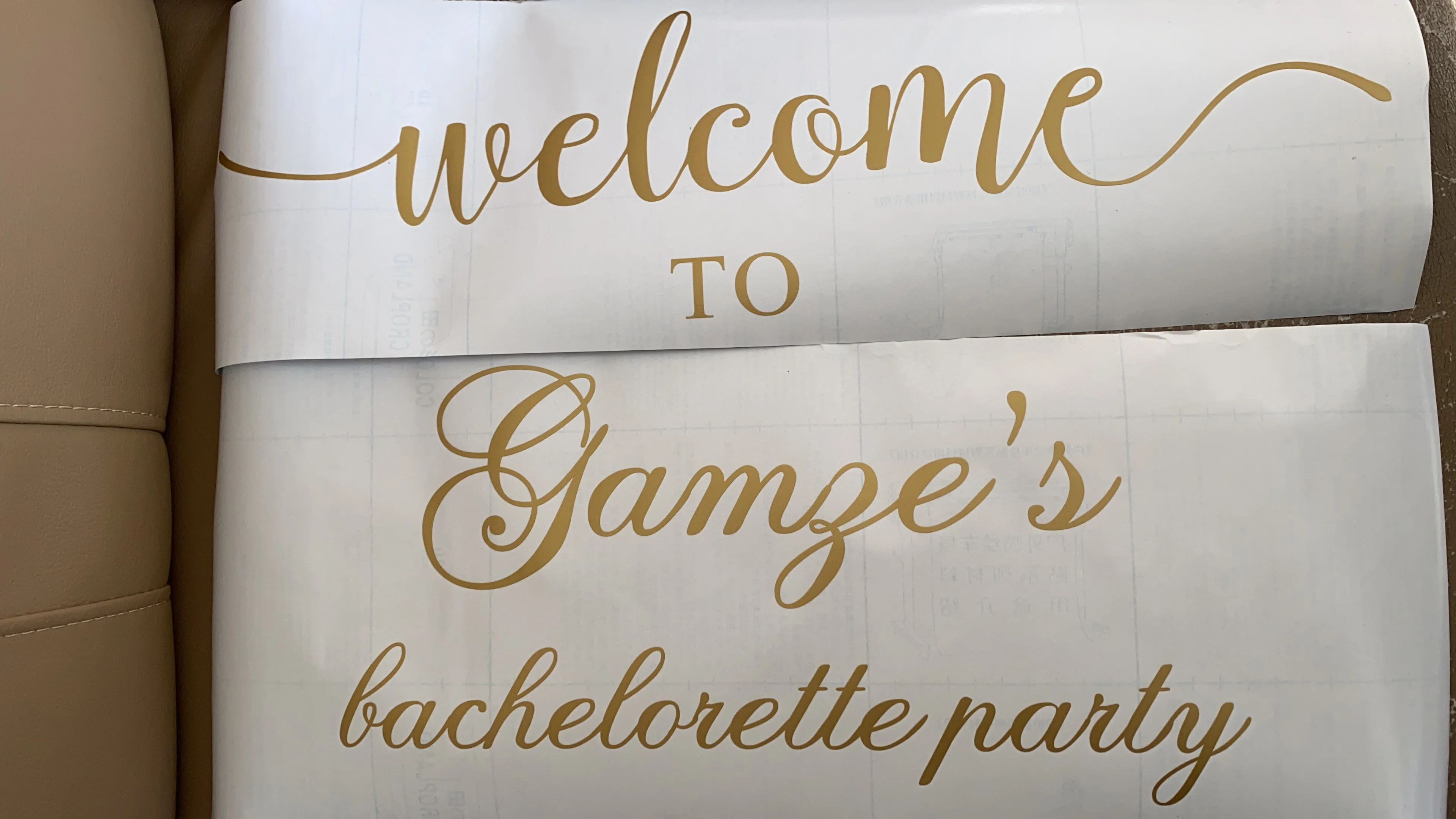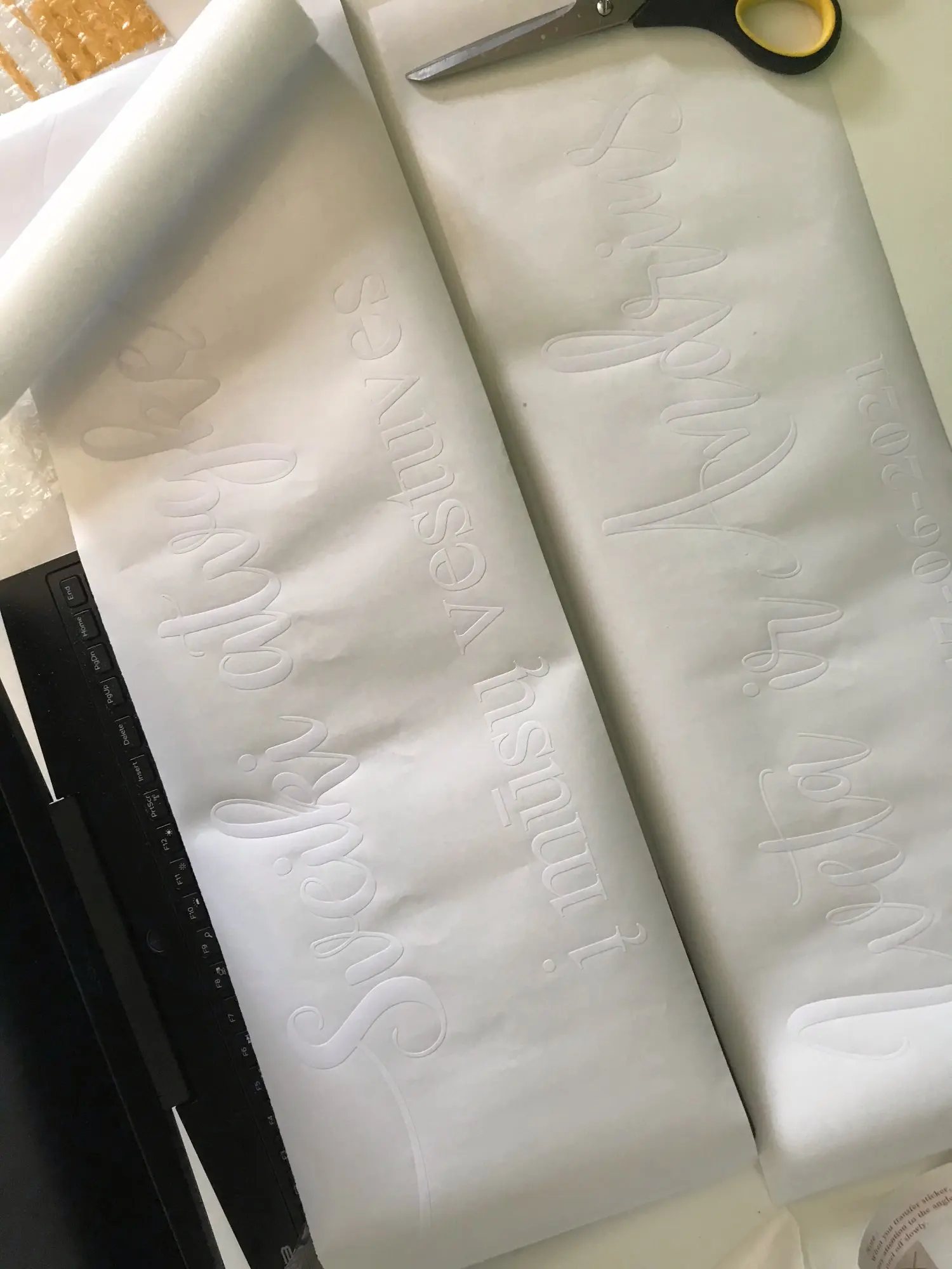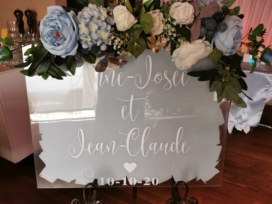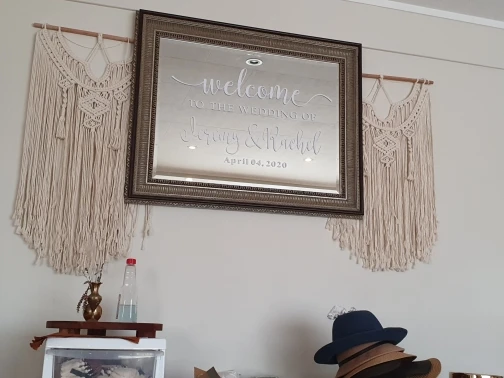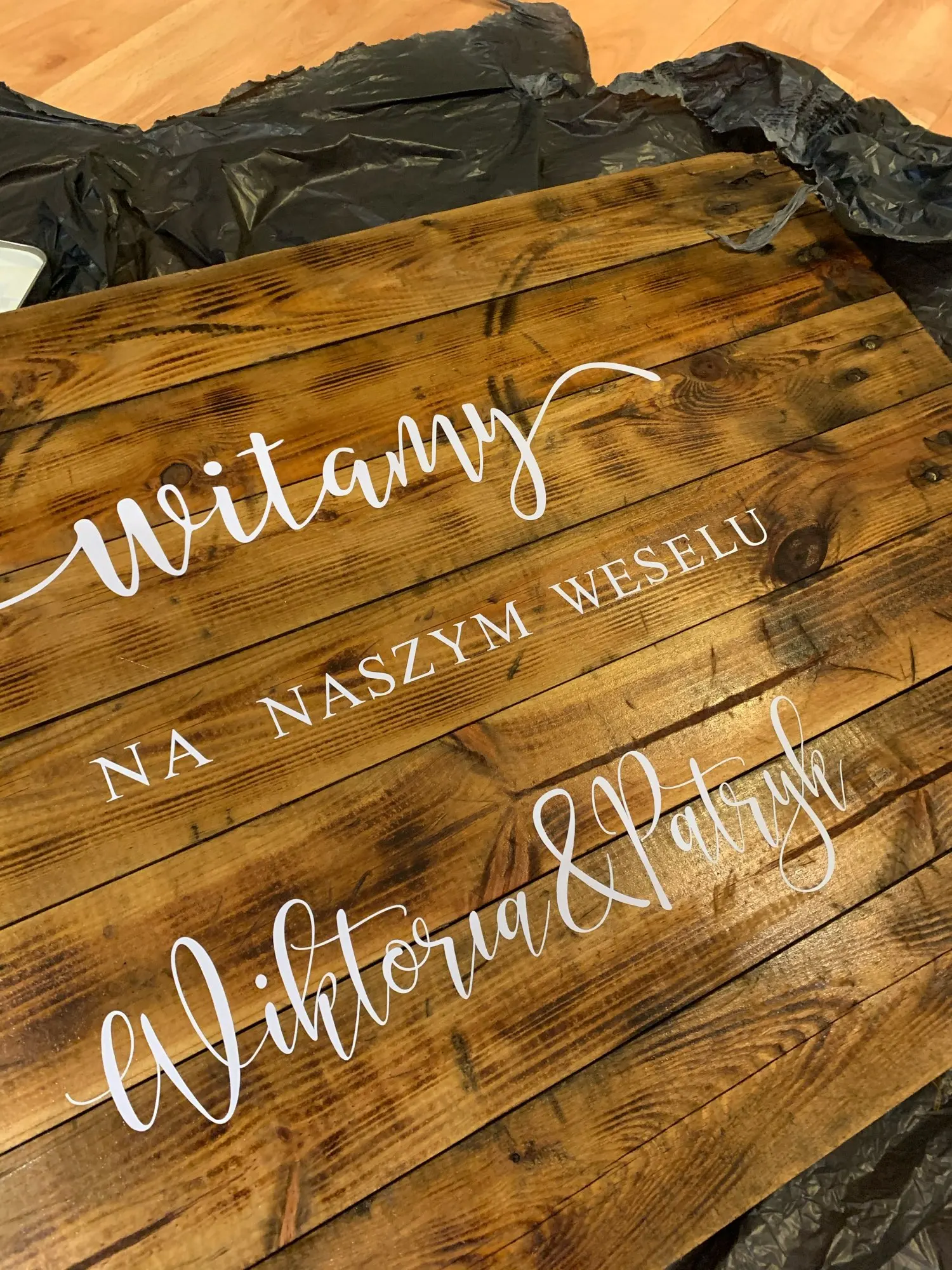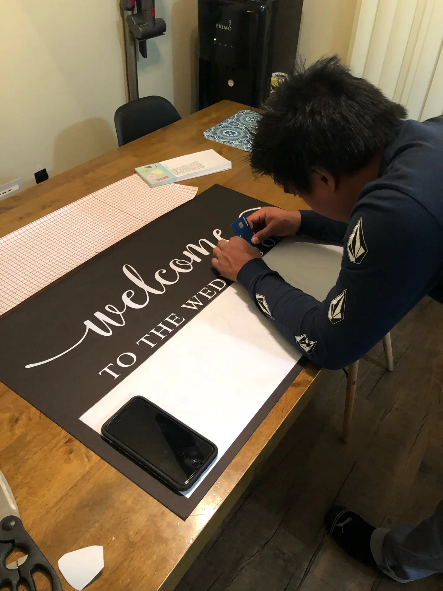 Мы кладем наклейку на некоторые плексигласы и используем для нашей свадьбы. Должны быть очень внимательны при размещении, так как когда он касается поверхности, он не движется
