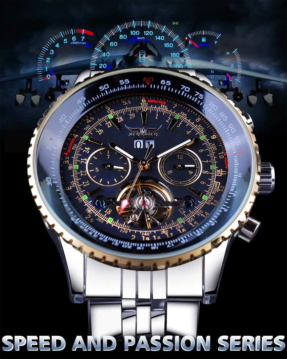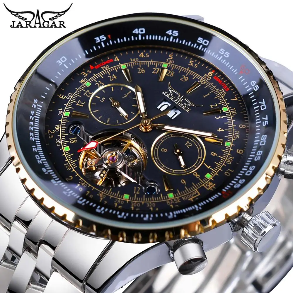 Мужские автоматические механические часы Jaragar, черные, серебристые, с отображением даты, часы из нержавеющей стали, Топ бренд Montre Homme
