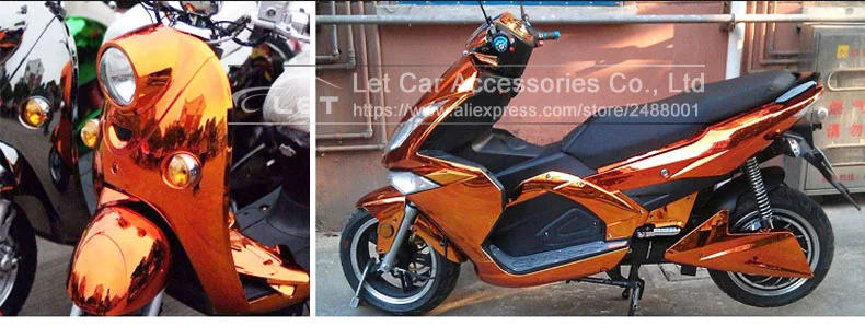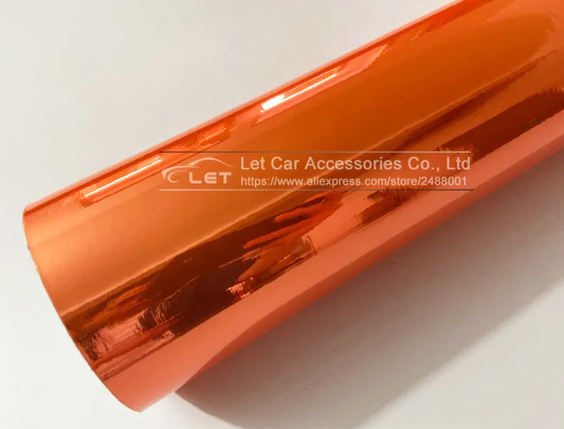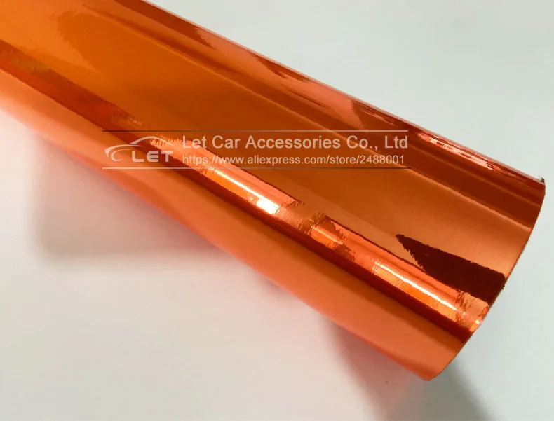 Высококачественная растягивающаяся оранжевая хромированная виниловая пленка с зеркалом, наклейка, лист с эмблемой, чехол для кузова автомобиля, велосипеда, мотора