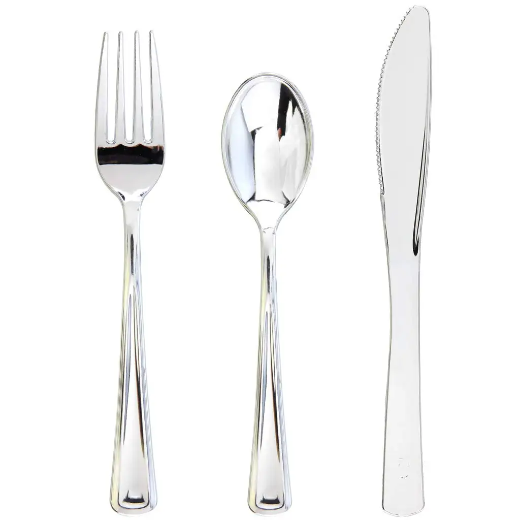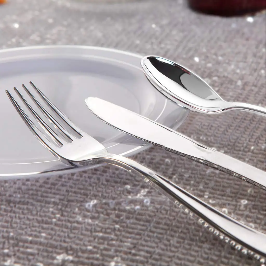Пластиковые столовые приборы из розового золота, 75 шт., набор из серебра одноразовая посуда пробы, тяжелые пластиковые столовые приборы, 25 вилок, 25 ложек, 25 ножей