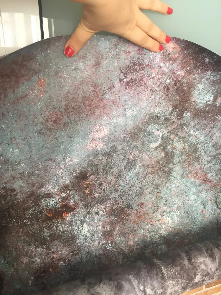 Дизайн напоминает металл с ржавыми пятнами. Интересно, необычно.