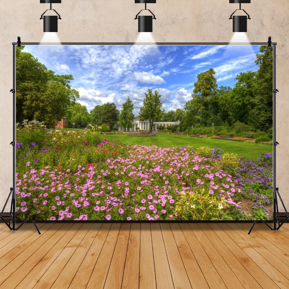 Laeacco фон природа фон для фотосъемки с изображением зеленых деревьев цветов озера парка сада красивых изображений фотосессия Фотостудия