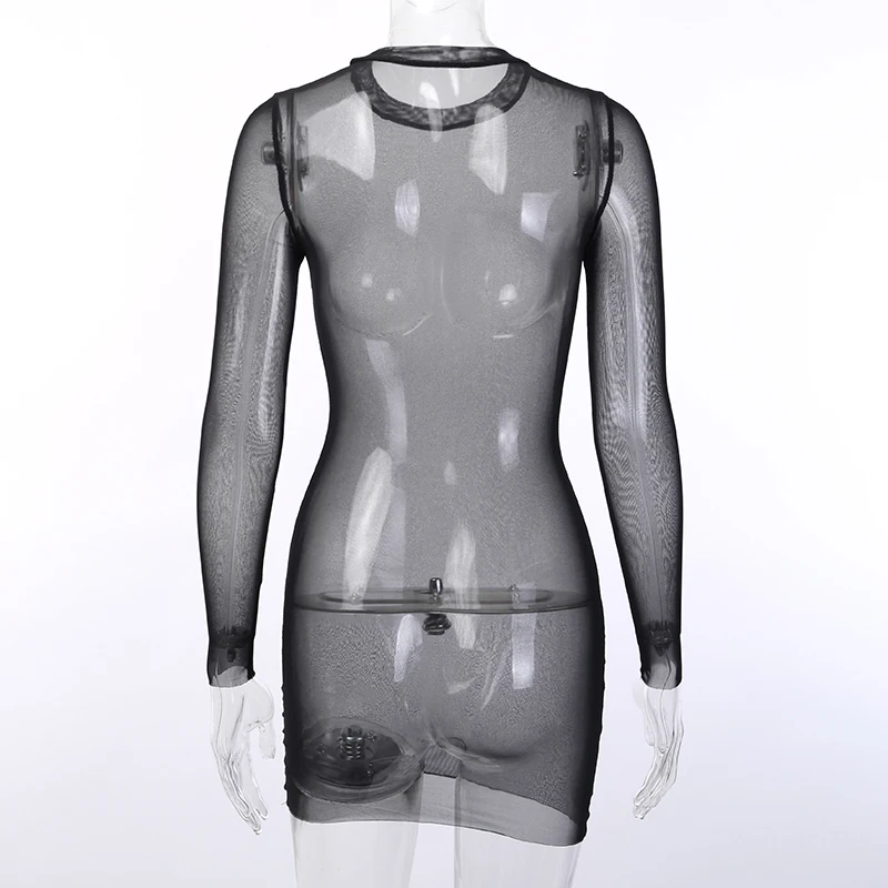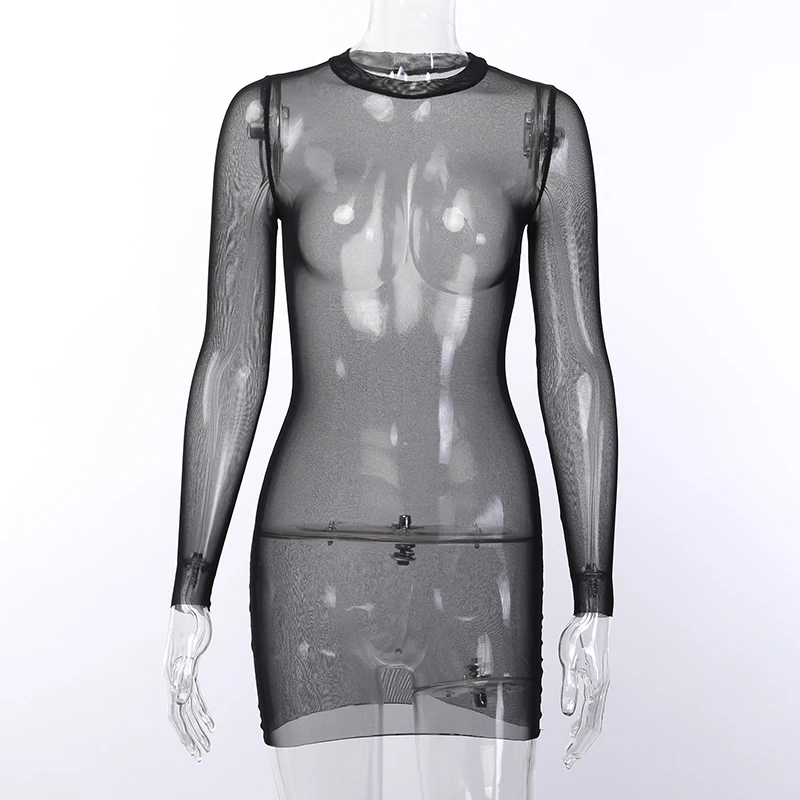 Сексуальное прозрачное платье с длинным рукавом, женское сексуально...