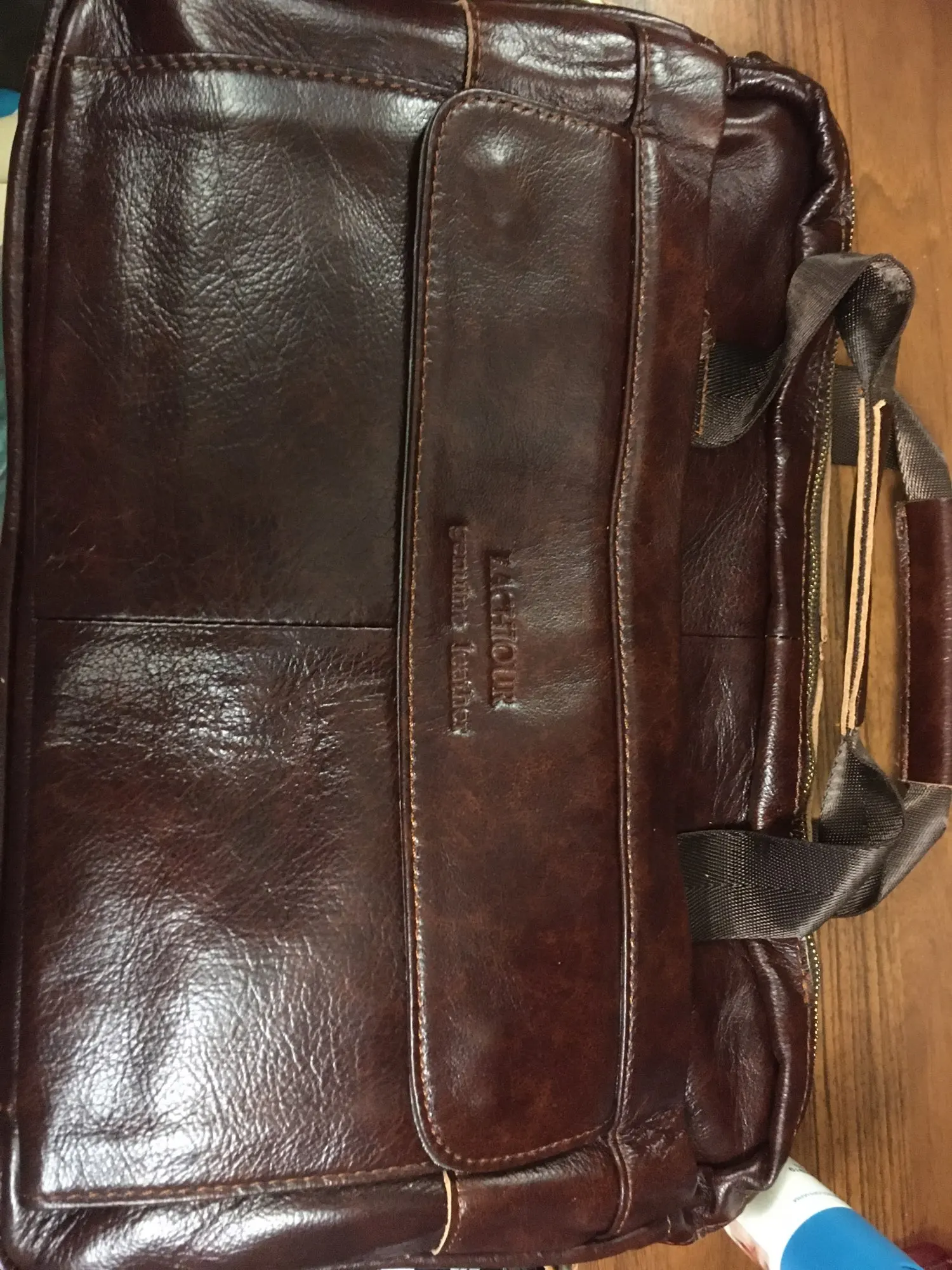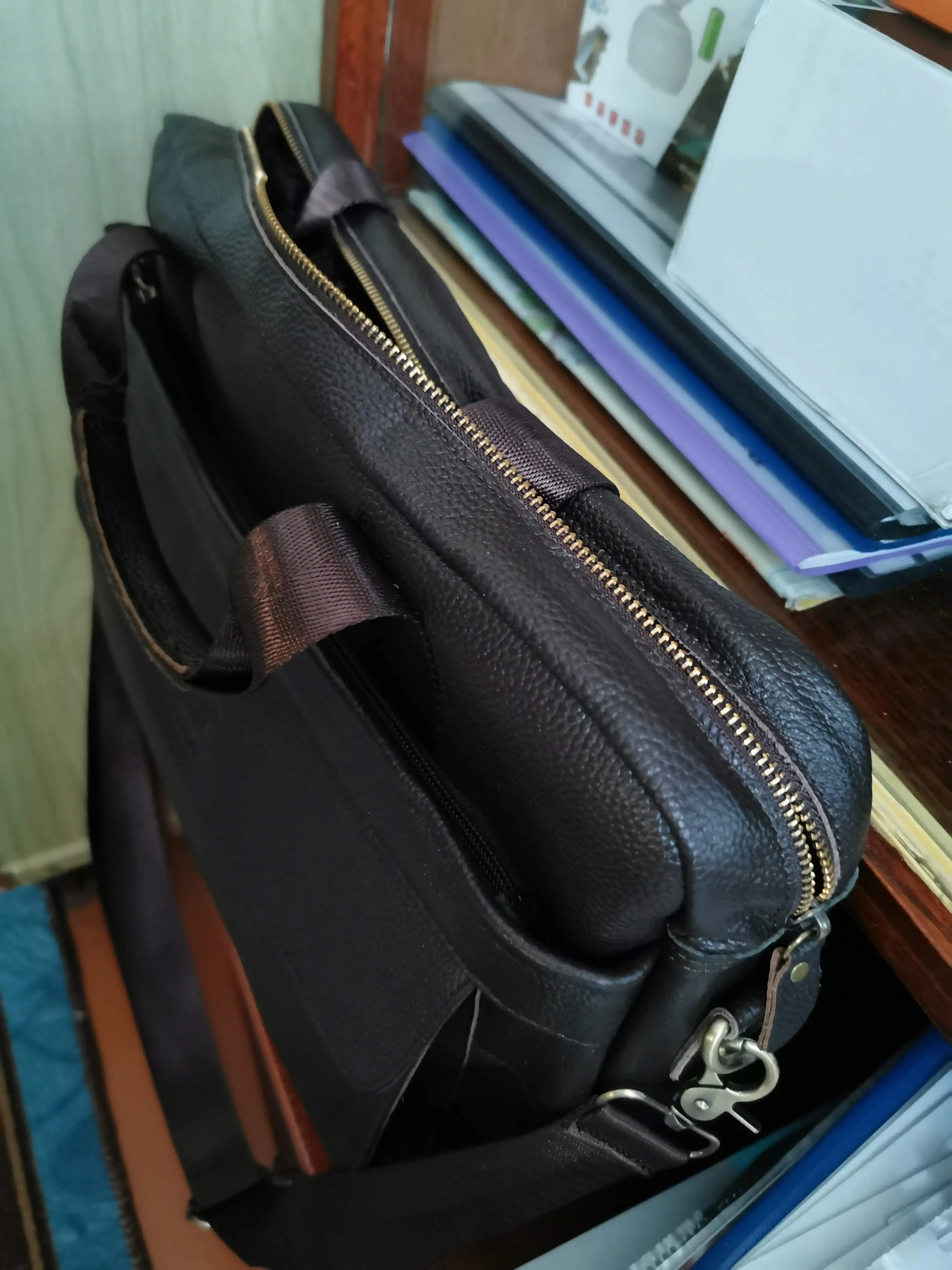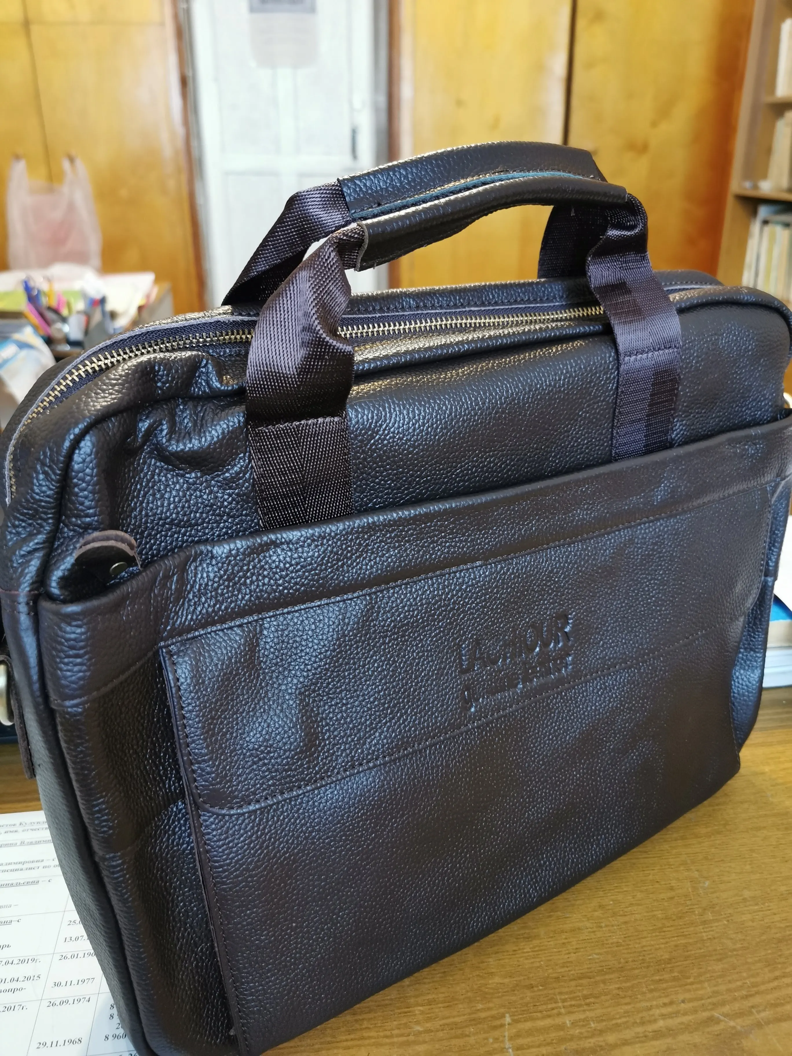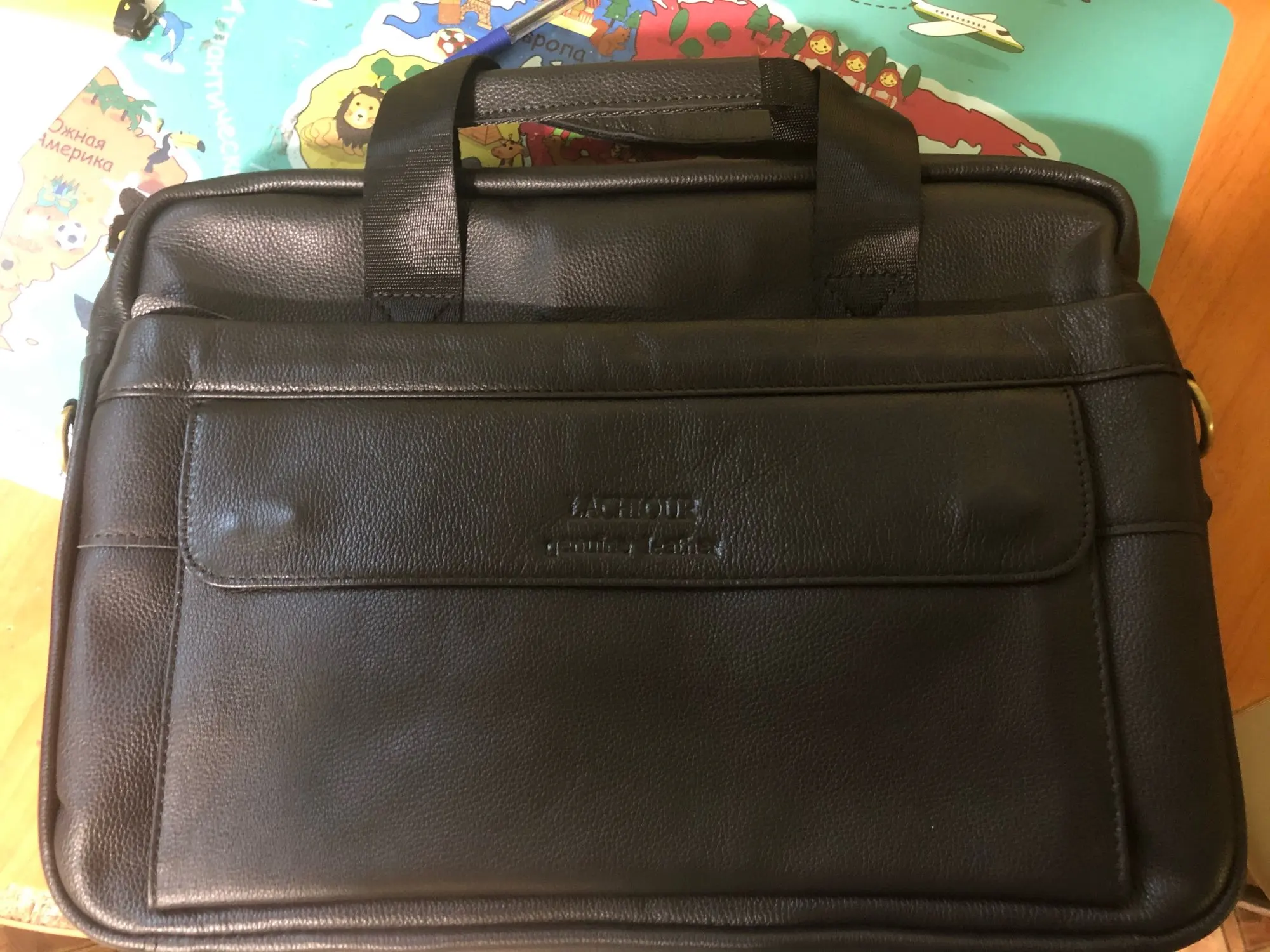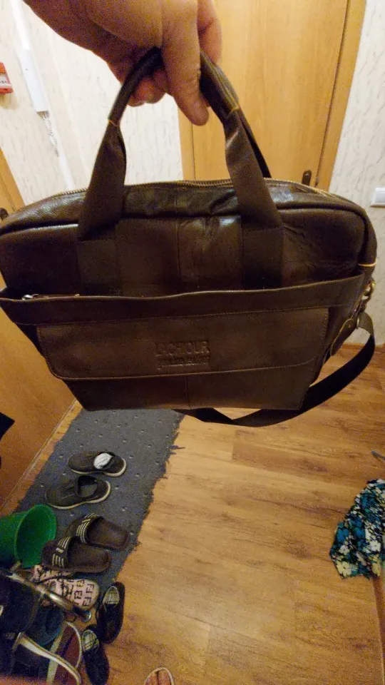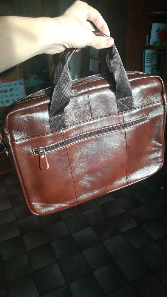 Спасибо огромное продавцу! Доставка 3 дня до квартиры курьером! Описание товара очень точное. Запах новой кожгалантереи. Сумка вместительная, пошита качественно. По весу и структуре материала - изделие из кожи. Продавца и товар рекомендую!!!