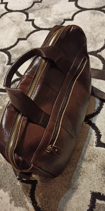 отличная кожаная сумка, сделано все очень качественно, качественная молния, ничего нигде не торчит. присутствует небольшой запах, но уверен что со временем выветрится. заказывал из России, шло наверно 3 дня