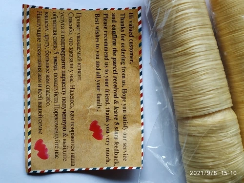 Товар получила. На первый взгляд все соответствует описанию. Нет неприятного запаха. Упакованы в зиппакет. Постараюсь дополнить отзыв после приготовления колбасы. Приятно удивила вложенная карточка с благодарностью и пожеланиями от продавца. Посылка отслеживалась и добралась до моего почтового отделения довольно быстро. Надеюсь мне понравится колбаса, приготовленная с помощью этих оболочек и я буду заказывать ещё и всем рекомендовать к покупке.