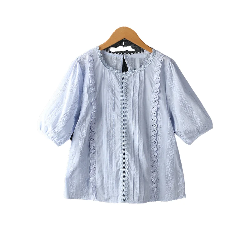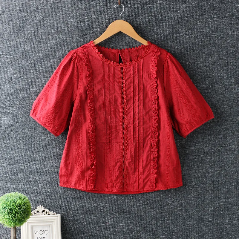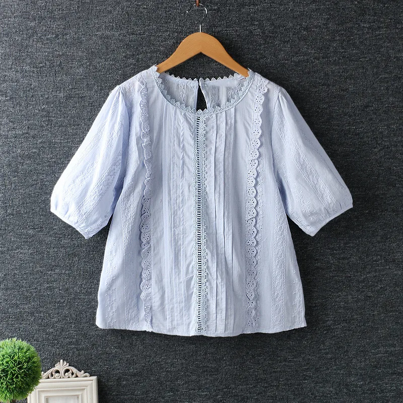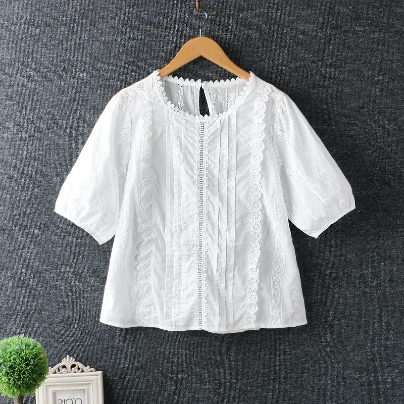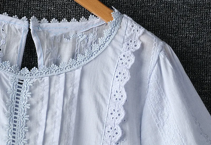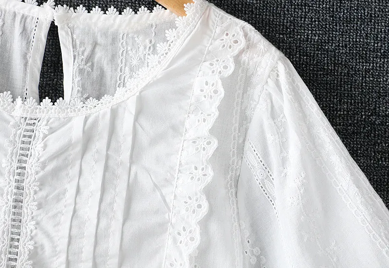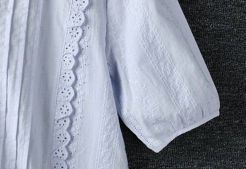 Lamtrip плиссированная шнуровка вышивка хлопковая блузка, рубашка Лето 2021